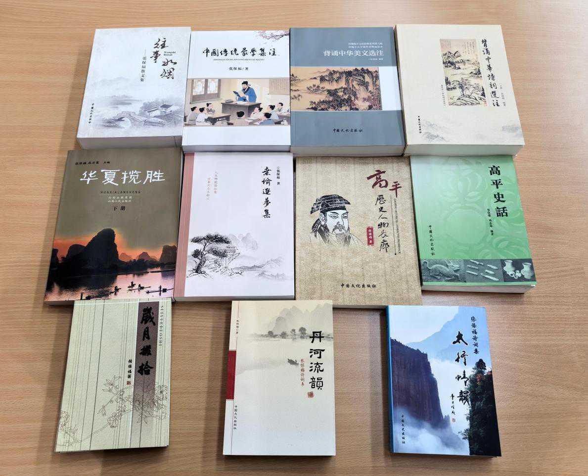捐赠文献中,《高平史话》《高平历史人物长廊》两部力作,系统勾勒出高平地域发展的历史脉络,细致梳理了本土先贤的鲜活事迹,是挖掘高平地域文化基因的珍贵史料。《中国传统蒙学集注》《背诵中华美文选注》则以深入浅出的笔触,架起传统经典与当代读者的沟通桥梁,兼具学术严谨性与普及实用性。《丹河流韵》《太行情韵》等诗词文集,更是以饱含深情地文字,定格丹河两岸的风土人情与太行山脉的人文气韵,尽显作者对故土的深切眷恋。