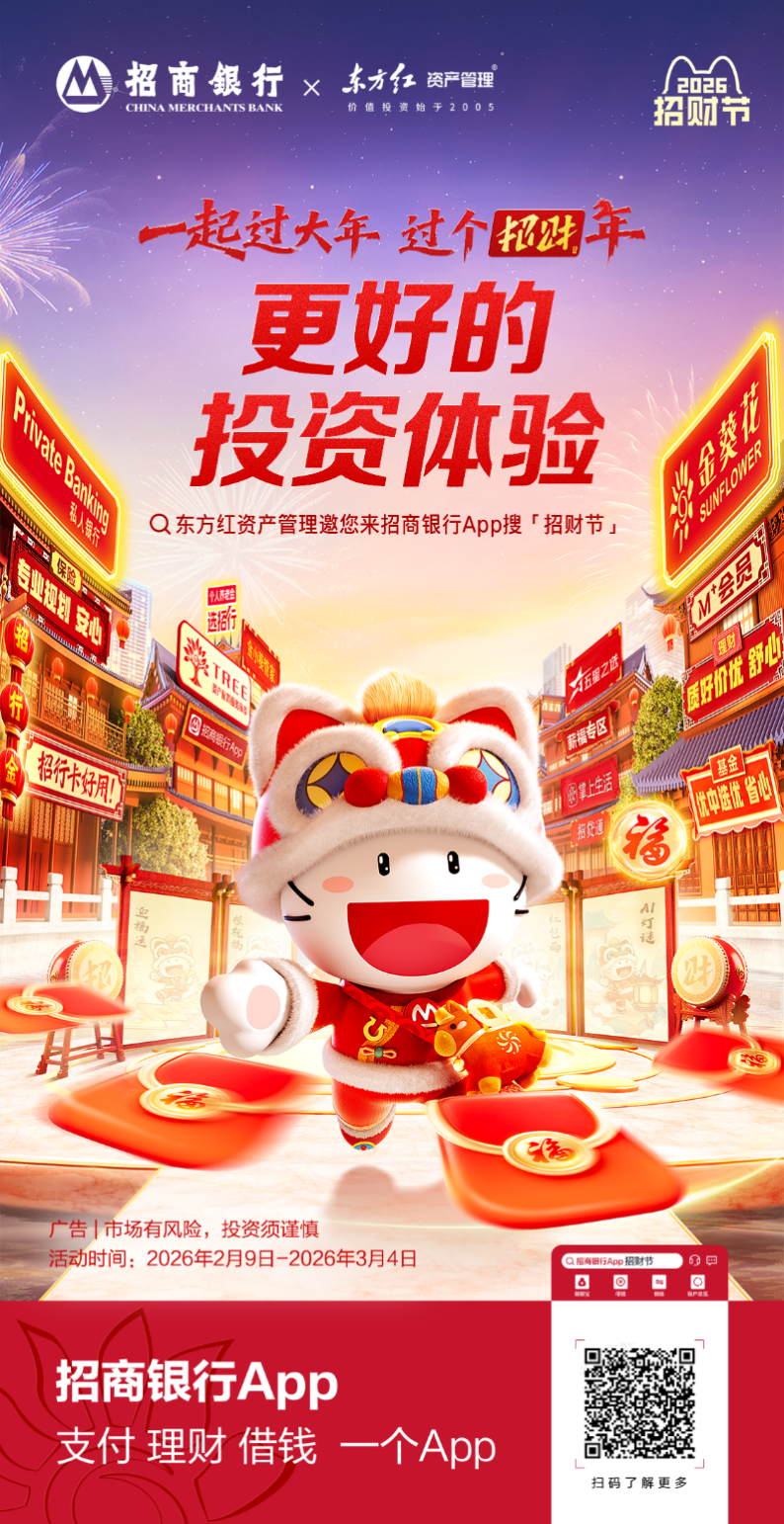 新春将至,年味渐浓。招商银行携手东方红资产管理重磅开启2026「招财节」活动,以「一起过大年,过个招财年」为主题,为广大投资者打造“更好的投资体验”,陪您温暖迎新春,财富共进阶。