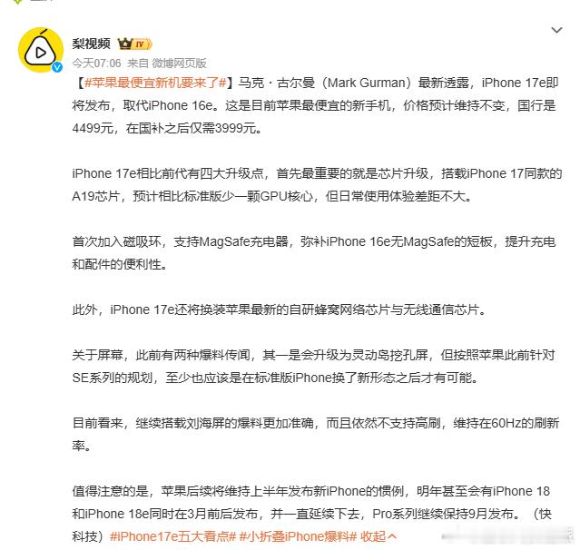 苹果最便宜新机要来了还是60Hz刷新率,不支持高刷,那这个价格其实性价比也不高了