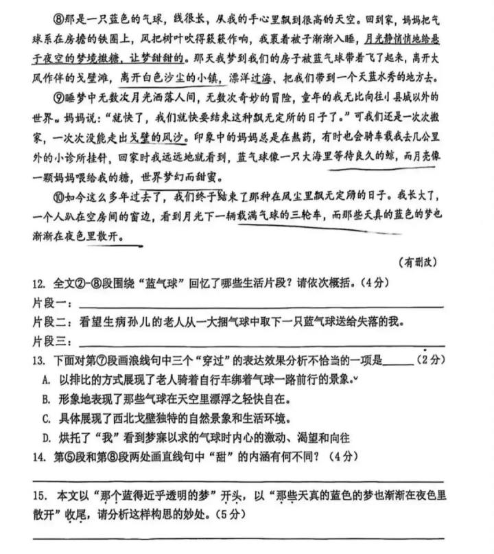 完整看完题目后,他说:“真是不好意思,旧作又来误导初三备考的孩子15分,也误导了自己。小说的多个主题,真没这么想,还能归纳那么多主题。”