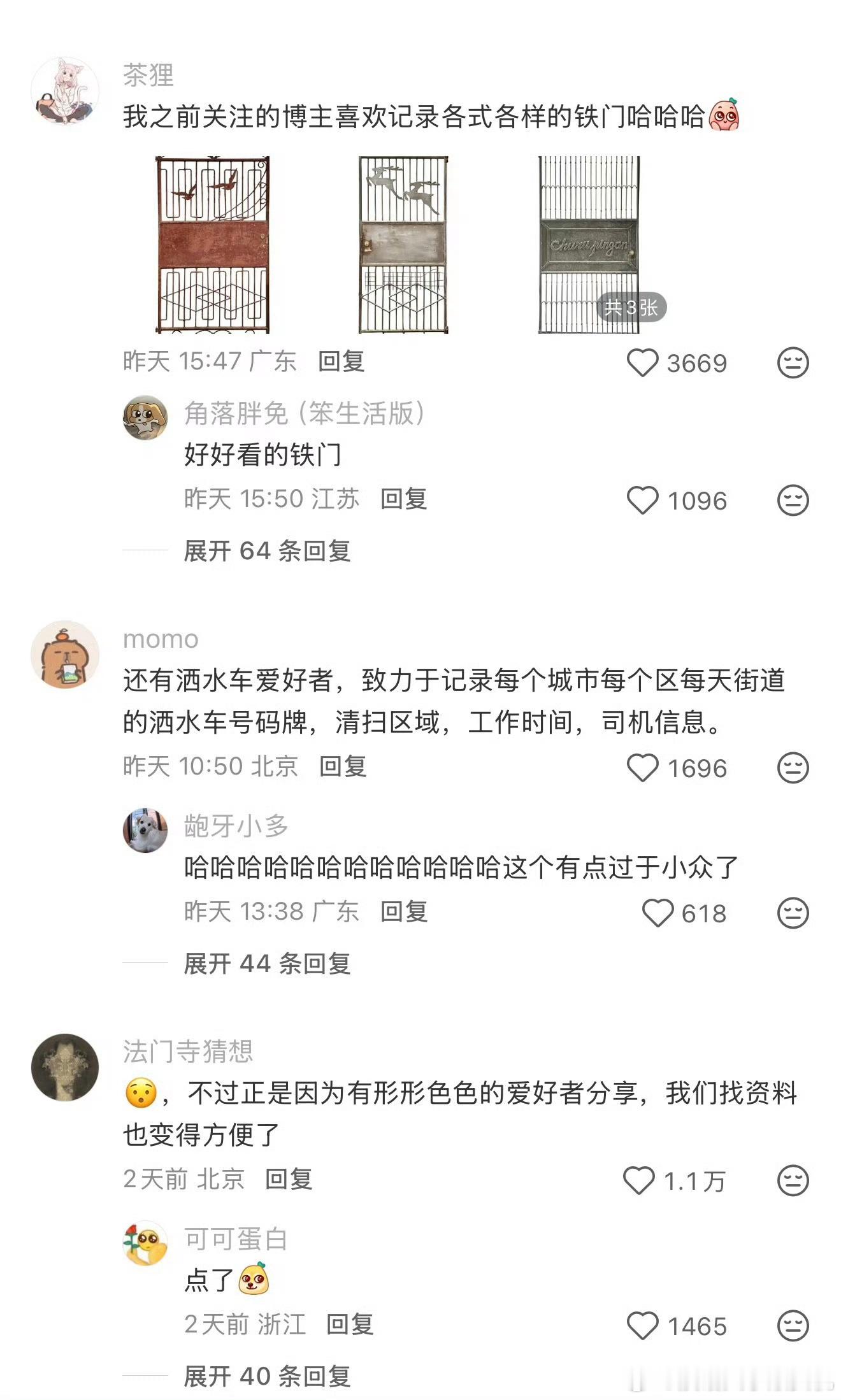 原来这个世界上还有地铁爱好者、公交爱好者、铁门爱好者、洒水车爱好者。原来有这么多小众的爱好