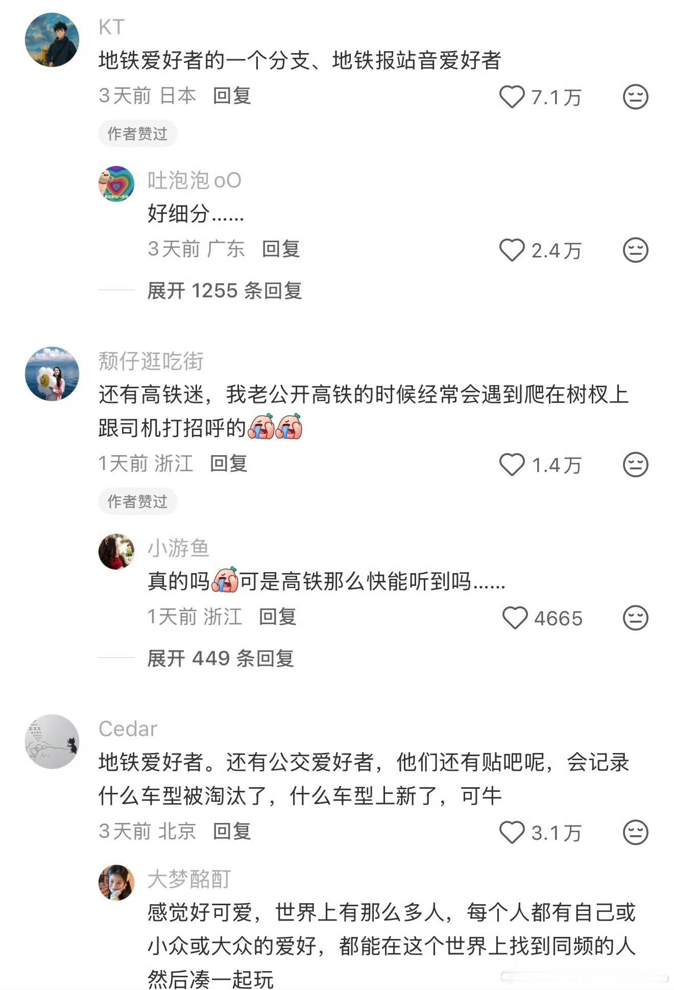 原来这个世界上还有地铁爱好者、公交爱好者、铁门爱好者、洒水车爱好者。原来有这么多
