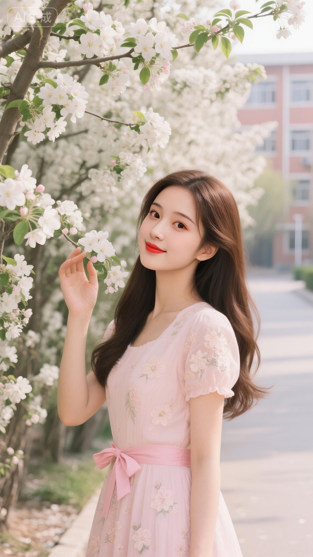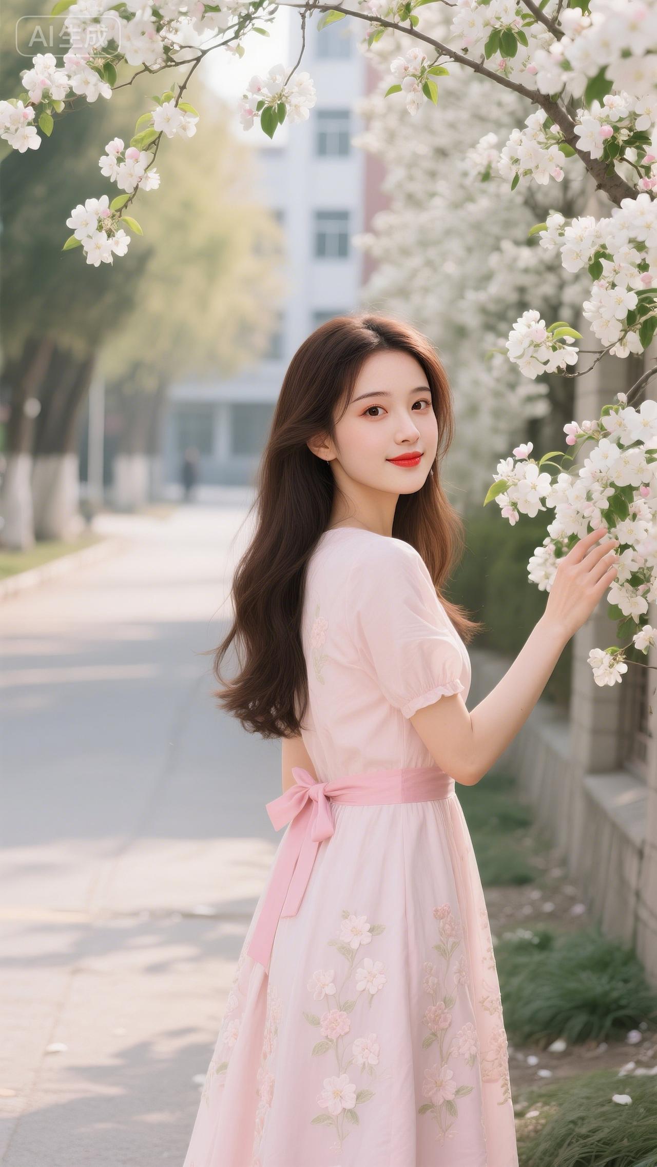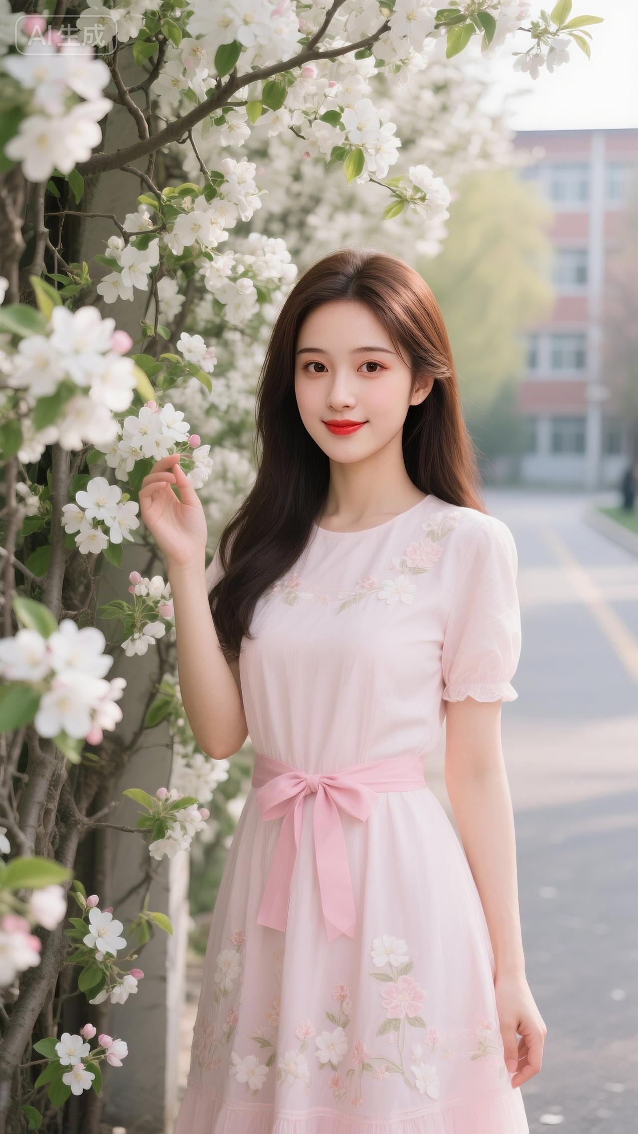 花树下的柔粉系春日少女 粉纱裙裹着满裙花意,和枝头的白樱刚好撞成温柔配色~轻