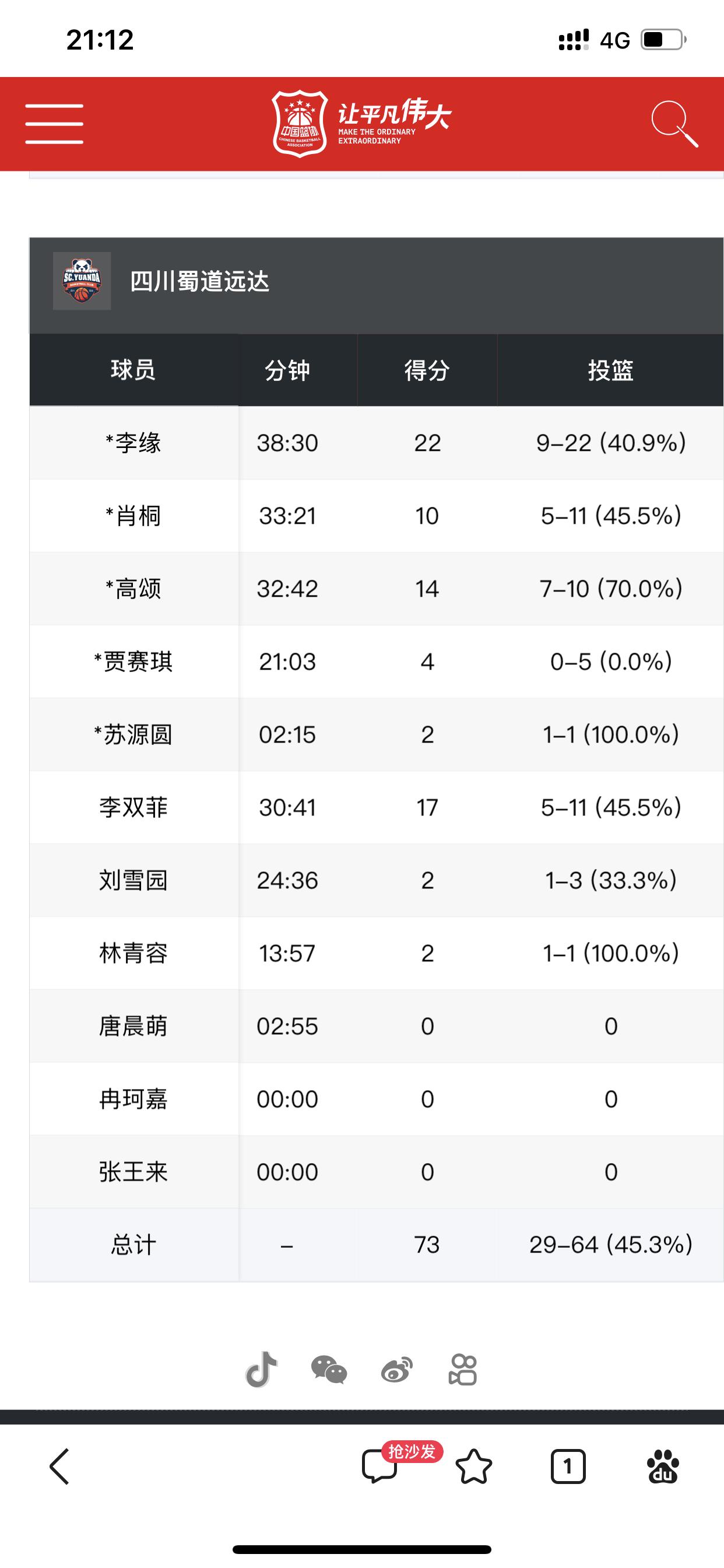 四川女篮逆转击败山东女篮,73:68 今晚最不能被说的球员就是李缘,李缘今晚砍