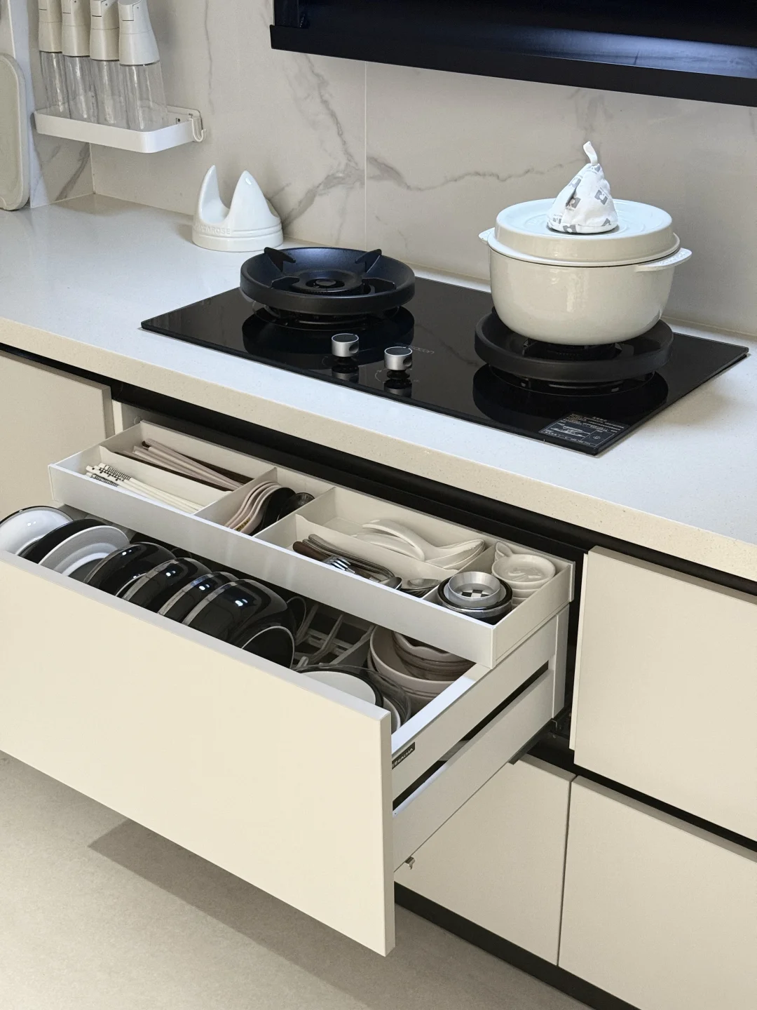 入住了三年多的小家 受欢迎的依旧是我这不大不小的6平方开放式厨房 🔵很多姐妹都问我:如何保持开放时厨房干净整洁? ▪️厨房用品都是整齐摆放 调料瓶炒菜工具通通上墙 ▪️多做储物柜 每个物品都有自己的“家” 随拿随放 ▪️开放式厨房zui 重要的就是一套好吸油烟机 像我家帅康星云大厨这种顶侧双吸设计 炒菜也不用担心跑烟 轻松排烟 搭配5.6kw猛火燃气灶 270°精准控火,大火爆炒、小火慢炖都轻松拿捏 ▪️厨房每次做完饭都要清洁一下 长期保持 也好打理