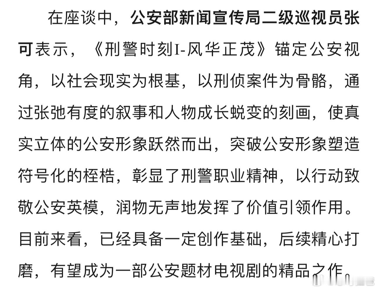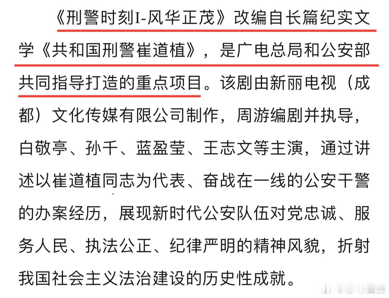 白敬亭主演的国家广电总局重点电视剧《刑警时刻1风华正茂》被广电总局电视剧司联合公安部新闻宣传局进行法治安全方向电视剧创作调研,并与主创座谈。白敬亭又红又正👍👍👍