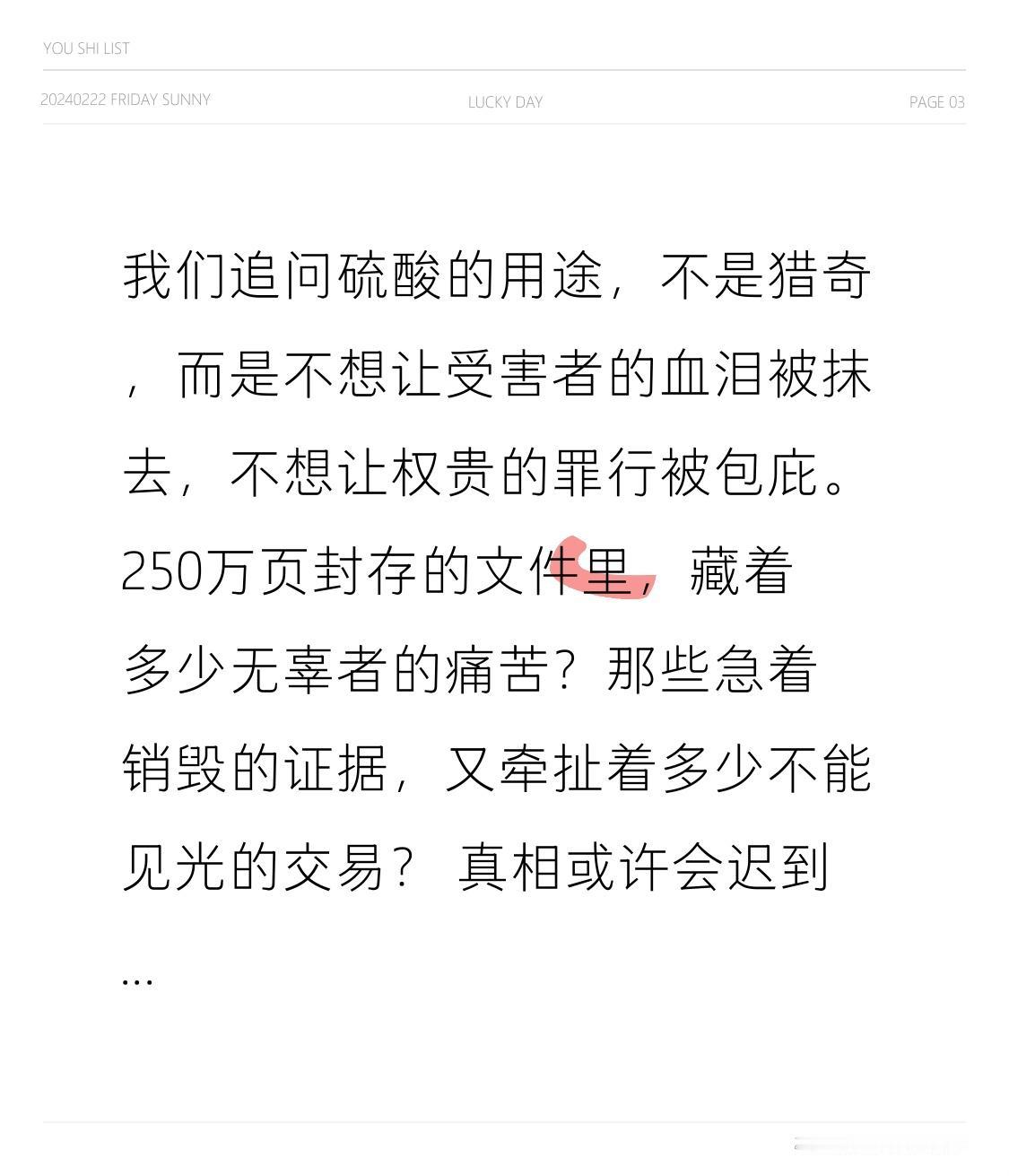 细思极恐!爱泼斯坦死前急购1250升硫酸,250万页文件封存,真相被权贵掩盖? 世纪悬案再爆惊天细节!美国恋童大亨爱泼斯坦死前3个月,突然加急订购1250升浓硫酸,花5000美元专人运到“萝莉岛”!官方说用来清洁泳池,可明眼人都懂:这剂量能溶解数十具尸体、销毁所有生物痕迹,而订购当天,FBI刚对他立案调查!这到底是巧合,还是早有预谋的灭口计划? 2018年12月6日,一份诡异的订单被埋在数百万页档案里:爱泼斯坦通过关联公司,买下6桶55加仑装浓硫酸,连运输保险和燃油费都单独结清,只为尽快运到那座布满权贵黑料的私人岛屿。要知道,1250升硫酸是什么概念?足以填满3个家用浴缸,在刑事犯罪中,它是销毁DNA、溶解尸体的“终极工具”,比任何清洁剂都高效。 官方给出的解释堪称荒唐:“用于海水淡化系统维护和泳池清洁”。可稍微懂点常识的人都知道,泳池消毒用的是稀释漂白水,海水淡化根本不需要高浓度浓硫酸,这种说法连网友都骗不过,马斯克直接在评论区怒怼“极其蹊跷”。更惊悚的转折来了——就在订单下达的同一时间,FBI正式立案调查他的儿童贩卖案,爱泼斯坦明知自己要倒台,急购硫酸的真实目的,瞬间指向“销毁证据”。 可这还不是最离奇的!2019年爱泼斯坦在狱中“自杀”,监控离奇故障、警卫集体失职、尸检报告前后矛盾,颈部骨折痕迹更像他杀。而2026年解密的档案显示,司法部至今还封存着250万页文件,理由是“保护受害者隐私”,可律师发现,大量涂黑内容根本不涉及隐私,反而可能掩盖权贵名单——特朗普的名字在已公开文件中被提及6000多次,背后还牵扯王室、首富、明星等一众大佬。更颠覆认知的是,有证人爆料他根本没死,而是被摩萨德接应到以色列,那批硫酸,或许是为“假死”销毁替身痕迹的关键。 从急购硫酸到“狱中自杀”,从350万页文件解密到250万页刻意封存,爱泼斯坦案早已不是一个人的罪行,而是一张笼罩西方权贵圈的黑暗网络。官方的敷衍解释、司法的拖延塞责、证据的莫名消失,都在诉说着同一个真相:当权力足够大,连死亡都能造假,连罪恶都能掩盖。 我们追问硫酸的用途,不是猎奇,而是不想让受害者的血泪被抹去,不想让权贵的罪行被包庇。250万页封存的文件里,藏着多少无辜者的痛苦?那些急着销毁的证据,又牵扯着多少不能见光的交易? 真相或许会迟到,但不该被永远埋葬。你相信官方的“自杀”结论吗?评论区聊聊你的推理,让更多人关注这场被权力掩盖的罪恶,愿每个受害者都能等到正义的那天!