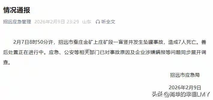 烟台招远金矿又出事了,心里像坠了块铅,沉甸甸的。 七个矿工兄弟,说没就没了。这七个人,谁家不是等着他们挣钱养家的顶梁柱?眼瞅着要过年了,家里的饺子怕是要凉在锅里,孩子盼爸爸的眼神该多让人心疼。 咱老百姓不懂那些设备参数、技术规程,可心里有杆秤——人命比天大。矿上墙上刷满“安全第一”,喇叭里天天喊“警钟长鸣”,咋就挡不住祸事? 听说这次矿罐掉下去,更让人堵心的是,出事了居然还想捂着掖着。要不是被查出来,这七个兄弟的命,难道就成了矿上账本里一笔糊涂账? 咱老百姓最恨的就是这个,矿工在井下拿命换钱,他们在上头连句实话都舍不得给。这良心,是被煤灰糊住了吗?这些年矿难听得还少吗? 每次出事都喊“严肃处理”“彻底整改”,红头文件发了一堆,可转过头,同样的坑,还是有人掉进去。为啥?因为“安全”俩字,在有些人眼里,不如利润来得实在;“整改”俩字,不如应付检查来得轻松。 那些拿着俸禄的检查人员,能不能别光在办公室看报表?下到井里走一圈,闻闻那股子煤烟味,摸摸冰冷的设备,或许就知道哪里该拧紧螺丝。那些当老板的,能不能把矿工当成自家兄弟? 七个兄弟的血,不能白流。咱不要听那些长篇大论的道理,就想看到真真切切的改变。让每个下井的工人,兜里揣着放心,头顶有安全顶着;让每个等丈夫、等爸爸回家的女人孩子,能在饭点看到熟悉的身影。 这点要求,过分吗?年关近了,愿这七个兄弟一路走好。更愿他们用命换来的教训,能让往后的矿井,少些血泪,多些平安。毕竟,平平安安回家,比啥都强。