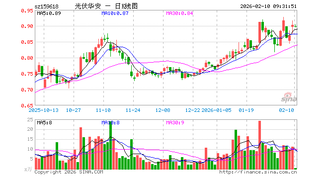 2月10日,光伏ETF指数基金(159618)开盘跌0.66%,报0.897元。光伏ETF指数基金(159618)重仓股方面,特变电工开盘跌0.25%,隆基绿能跌0.94%,阳光电源涨0.01%,TCL科技跌0.20%,通威股份跌0.84%,迈为股份跌1.80%,德业股份跌0.13%,正泰电器跌0.42%,TCL中环涨0.00%,捷佳伟创跌0.19%。