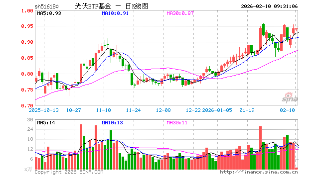2月10日,光伏ETF基金(516180)开盘跌0.32%,报0.938元。光伏ETF基金(516180)重仓股方面,特变电工开盘跌0.25%,隆基绿能跌0.94%,阳光电源涨0.01%,TCL科技跌0.20%,通威股份跌0.84%,迈为股份跌1.80%,德业股份跌0.13%,正泰电器跌0.42%,TCL中环涨0.00%,捷佳伟创跌0.19%。