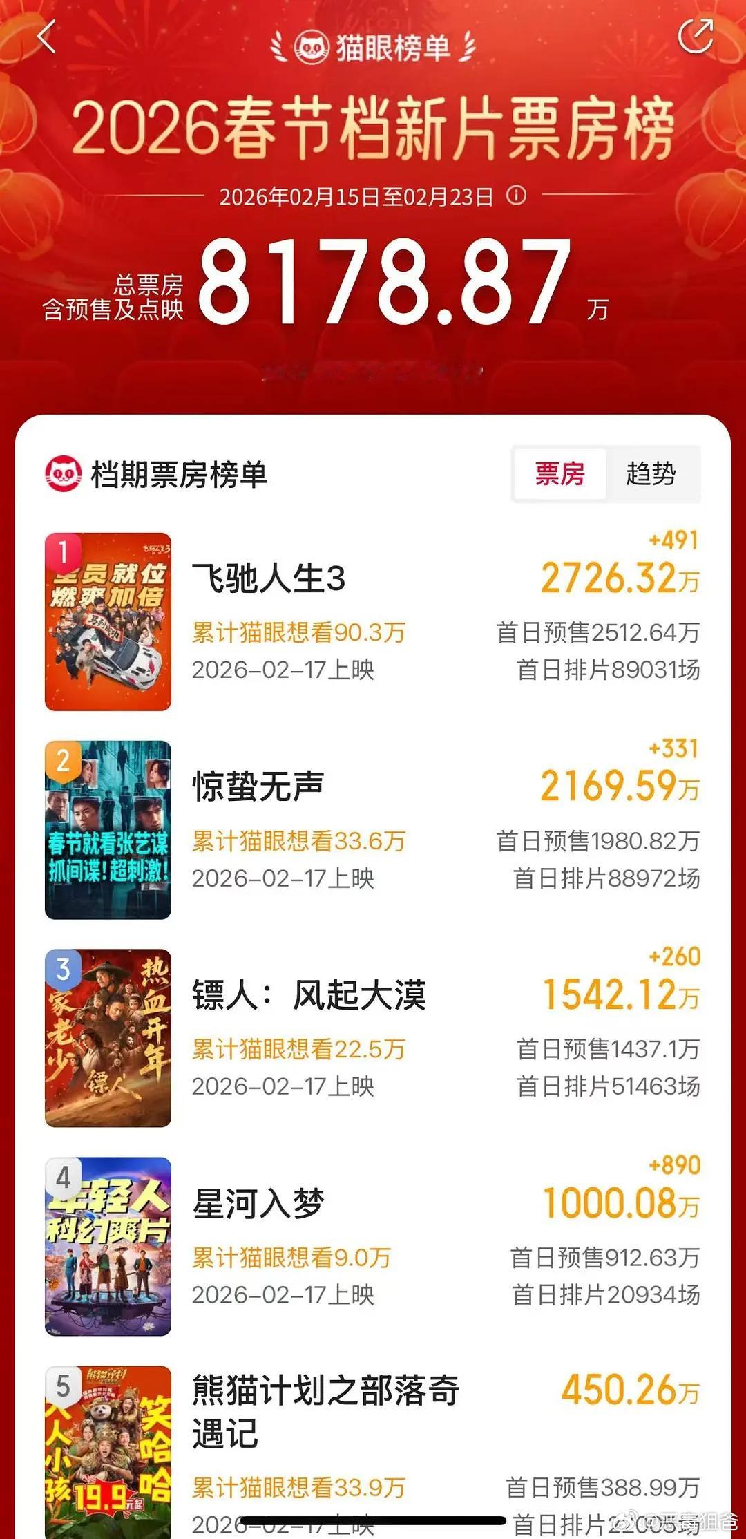 最终预售成绩还得等好几天才出来,第一次进入春节档就拿到了首日预售千万的好成绩谁在造谣王鹤棣flop