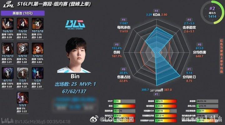 吸血鬼型上单😂Bin第一赛段数据雷达图:吃最多的经济打最少的伤害!粉丝制作第一
