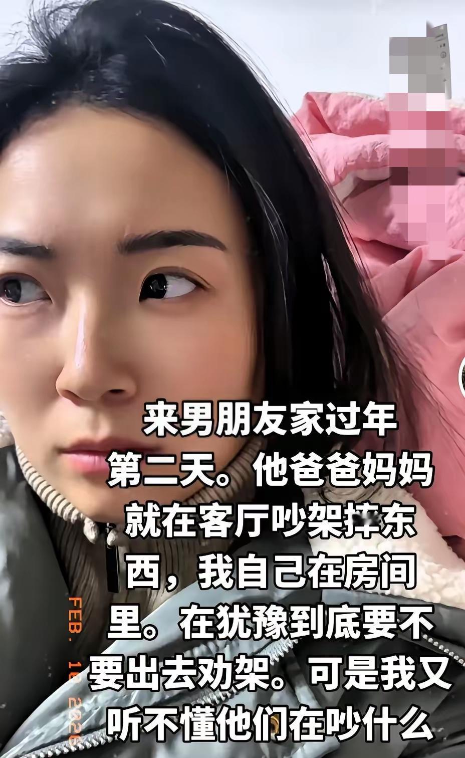 第一次去男友家过年,刚第二天就撞上他爸妈大吵大闹、摔东西,姑娘躲在房间里纠结要不