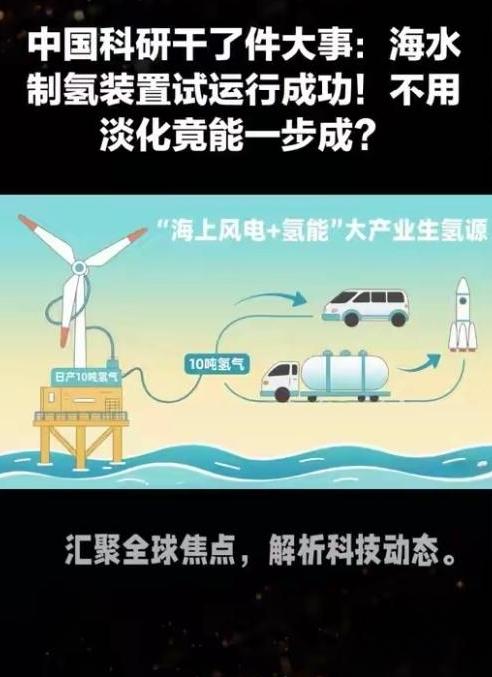 中国炸场!海水制氢破50年世界难题 全球科研界卡了半世纪的海水制氢难题被中国干成了。谢和平院士团队联合东方电气,直接打破水垢魔咒和酸水腐蚀坑两大死结,不用淡化海水直接制氢的技术彻底落地。2026年初研发的110标方/小时分体式制氢设备,在海上连续运行超1000小时,法拉第效率稳在99%以上,这也是全球首个百标方级长时运行的海水制氢装置。 此前全球多国科研机构和能源巨头砸钱攻关全栽了。海水里的钙镁离子结垢会堵死电极,氯离子的酸水腐蚀会啃坏设备,要么淡化海水增成本,要么定期换零件断生产,工业化根本不现实。中国团队偏不走老路,不靠研发超级催化剂,而是造了疏水多孔膜这个超级筛子,借海水和电解液的蒸气压差把纯水汽筛进电解槽,92种杂质全挡在外面,从根源上杜绝结垢和腐蚀。电解产生的废热还能加温海水提效,全程不用额外耗电。 这项技术2022年就登上《自然》期刊,还入选中国科技十大进展。实验室阶段400L/h装置在深圳湾一口气运行3200小时,如今海上风电耦合制氢每方仅耗5度电,成本低至0.4元/方,比煤制氢、天然气制氢还划算。盐湖水、废水甚至矿泉水都能用来制氢,分体式设计更让运维变简单,核心电解单元免维护,前端接触海水的模块能快拆更换,海上恶劣环境也能扛住。 目前设备还在中试优化阶段,未来能把海上风电场变成能源化工岛,就地制氢再运输,真正实现绿氢低成本量产。地球70%的海水都是能源提款机,这波突破直接改写全球新能源格局。你觉得这项技术多久能普及到日常生活,中国会凭此拿下全球氢能定价权吗?海水制氢中国突破 谢团队攻克制氢难题