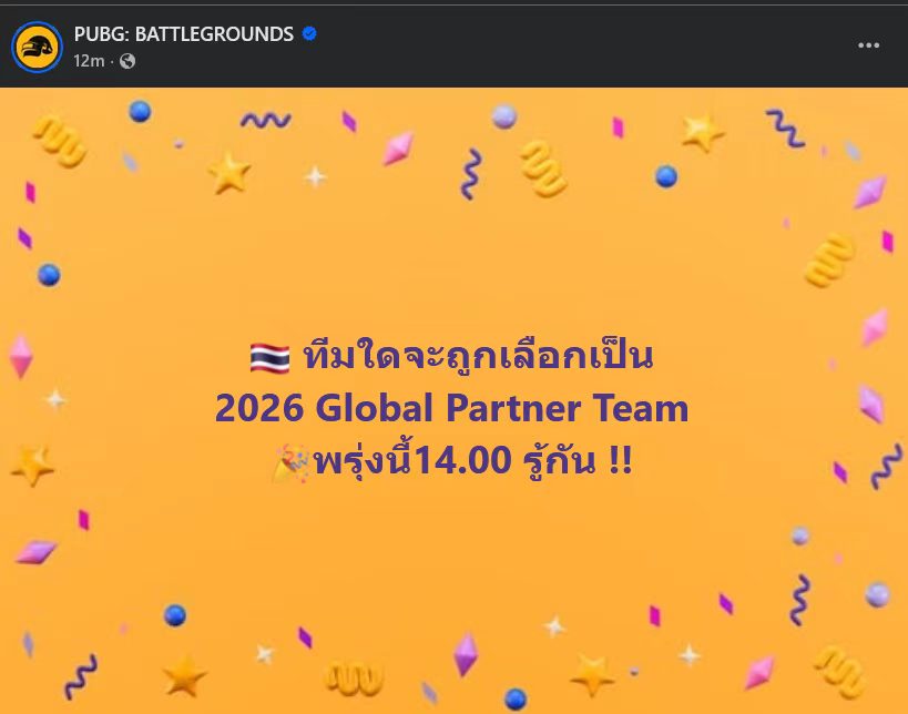 2026PUBG全球合作伙伴团队明天14:00UTC+7(北京时间下午3:00、欧洲时间上午8:00)