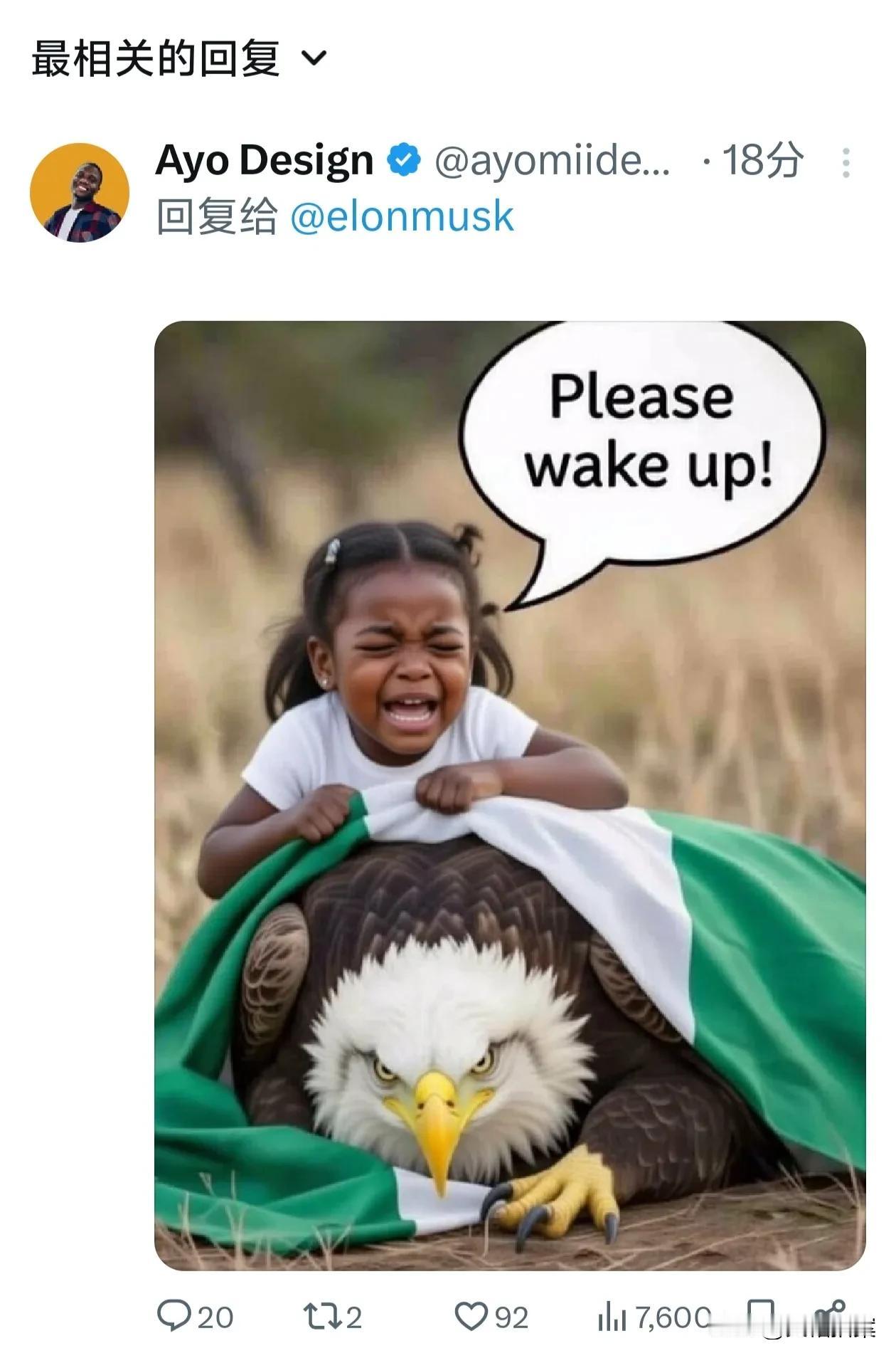 马斯克和英国网友吵起来了? 马斯克在网上发文嘲讽英国正在“绿化”,他用一张AI图将英国比喻成一头沉睡的狮子,一位小女孩正在哀求着唤醒它(英国)。 马斯克刚发完这个,就有英国网友如法炮制。制作了一张沉睡的白头鹰(美国)。 总之,如今美国和英国是各有各的问题,互相看不上眼。特斯拉马斯克 马斯克ai智能 马斯克 马斯克AI失控 马斯克AI上天