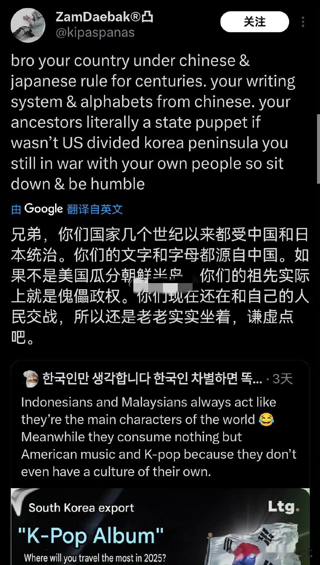 推特上的东南亚人正在和韩国人大战——东南亚人把中国搬了出来“韩国跟中国比太小了,