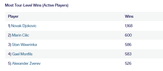 据统计,这是西里奇在巡回赛级别比赛的第600胜,仅次德约科维奇,排名现役球员第二。