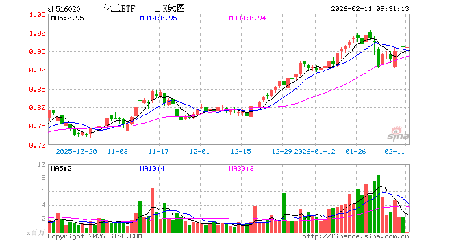 化工ETF(516020)业绩比较基准为中证细分化工产业主题指数收益率,管理人为华宝基金管理有限公司,基金经理为陈建华,成立(2021-02-26)以来回报为-4.05%,近一个月回报为5.97%。