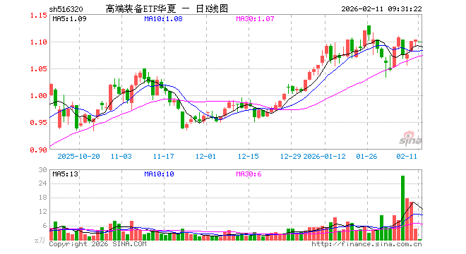 2月11日,高端装备ETF华夏(516320)开盘跌0.36%,报1.098元。高端装备ETF华夏(516320)重仓股方面,宁德时代开盘涨0.53%,阳光电源跌0.50%,中国船舶跌0.14%,汇川技术跌0.47%,三一重工涨0.25%,特变电工跌0.54%,隆基绿能跌0.05%,徐工机械涨0.25%,思源电气跌0.53%,潍柴动力跌0.97%。