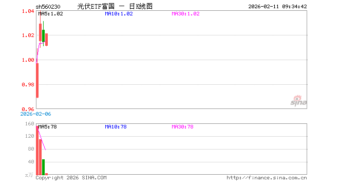 光伏ETF富国(560230)业绩比较基准为中证光伏产业指数收益率,管理人为富国基金管理有限公司,基金经理为牛志冬,成立(2026-01-28)以来回报为1.79%。