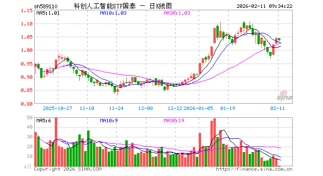 科创人工智能ETF国泰(589110)业绩比较基准为上证科创板人工智能指数收益率,管理人为国泰基金管理有限公司,基金经理为麻绎文,成立(2025-09-26)以来回报为4.10%,近一个月回报为2.77%。