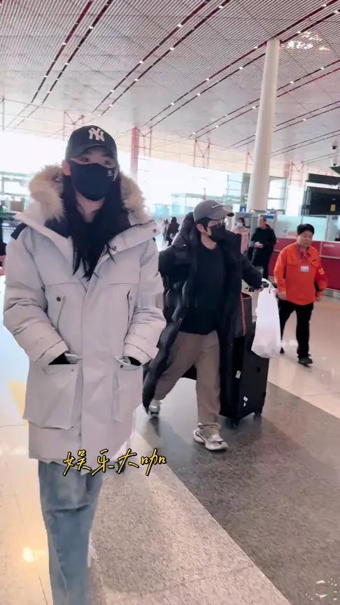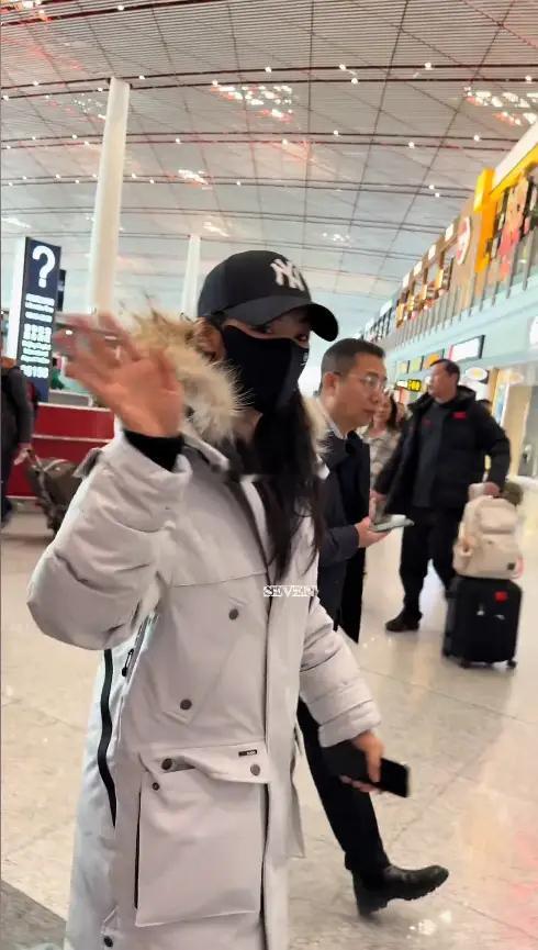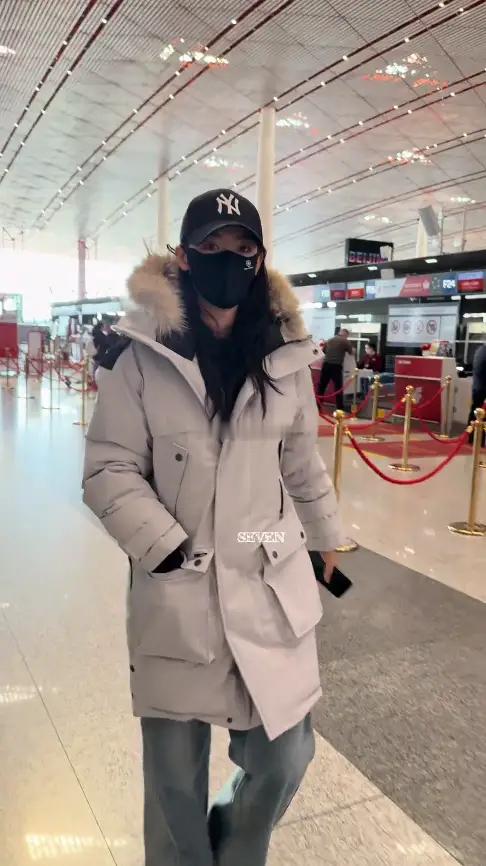 前几天还在红毯上穿红裙气场全开,转头现身机场,就裹着大棉袄双手插兜,连妆都没化。