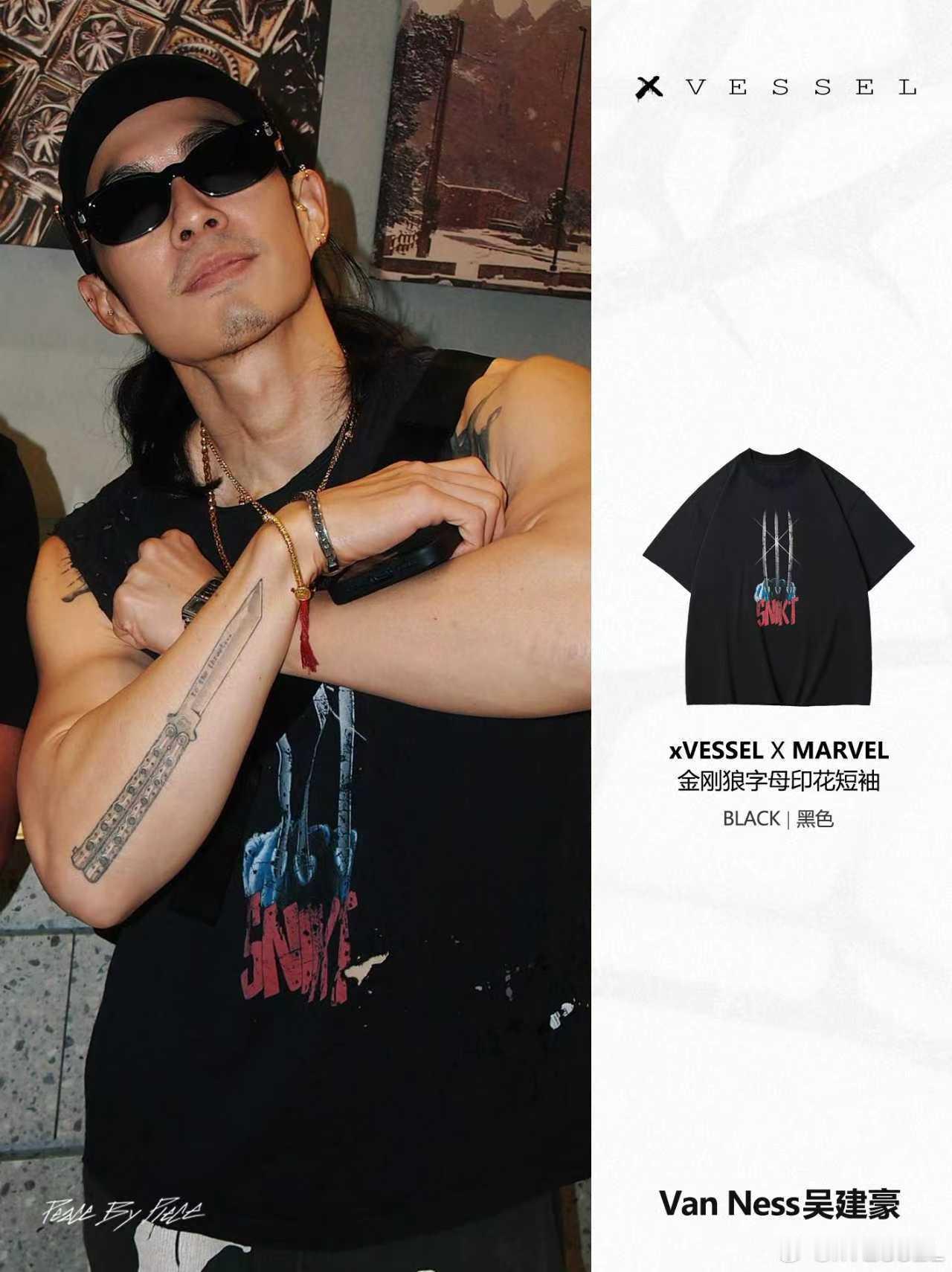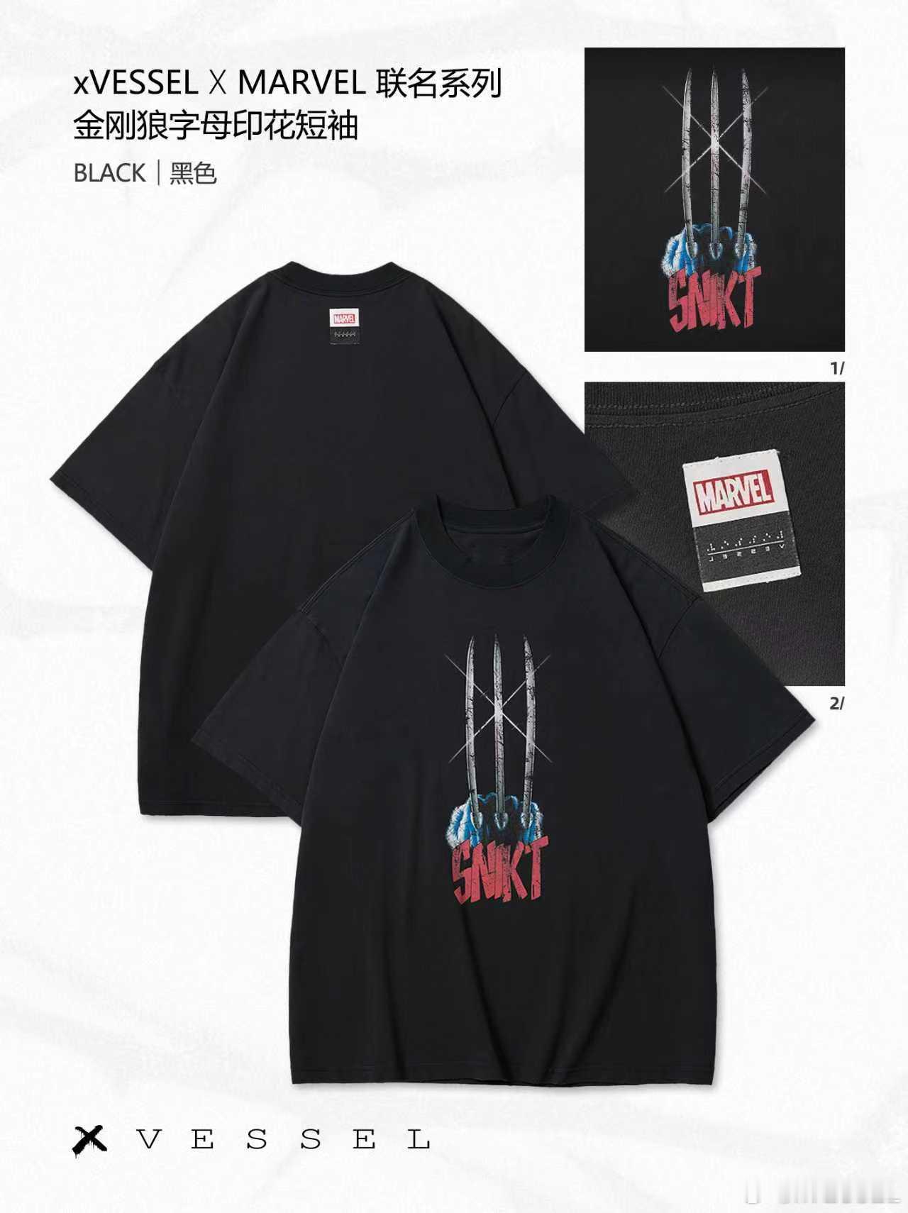 上身【 xVESSEL漫威金刚狼系列短袖 】,将金刚狼标志“狼爪”以漫威视觉风格呈现,亮出“狼爪”,释放“潮”能力。
