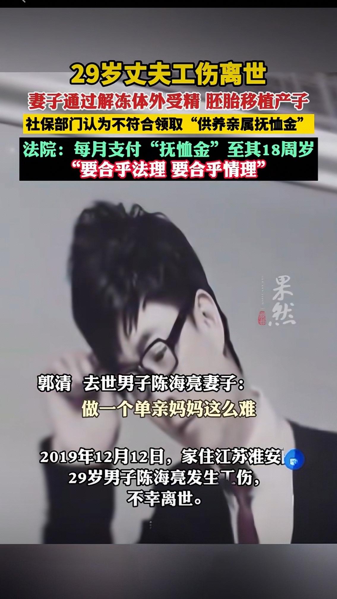 这是一场法理与情理的双向奔赴,也是法治温度最动人的模样。 29岁的丈夫突发工伤离世,原本三天后就要进行的胚胎移植,瞬间成了妻子一个人的孤军奋战。她顶着丧夫之痛、世俗眼光与经济压力,毅然解冻两人共同孕育的冷冻胚胎,把丈夫留在世间唯一的血脉带到人间。本以为是对爱情最后的坚守,却在申领抚恤金时被当头拦下——社保部门以“不符合传统遗腹子认定”为由,拒绝支付供养亲属抚恤金。 一边是冰冷的条文滞后于科技发展,一边是嗷嗷待哺的孩子与孤苦无依的母亲。法律不该是冷冰冰的文字,而应是守护弱者的铠甲。法院没有机械套用20年前的规定,而是穿透形式看本质:孩子是夫妻二人亲生骨肉,胚胎形成于父亲生前,与自然受孕遗腹子无本质区别,理应平等享受抚恤保障。一句“合乎法理,更要合乎情理”,道尽了司法为民的初心。 这不止是一场胜诉,更是对生命的尊重、对家庭的守护、对公平正义的最好诠释。科技在进步,法律也应有温度,不辜负每一份深情,不亏待每一个弱小。 你支持法院的判决吗?你觉得法律该优先情理还是条文?评论区说说你的看法!抚恤金的性质如何认定?