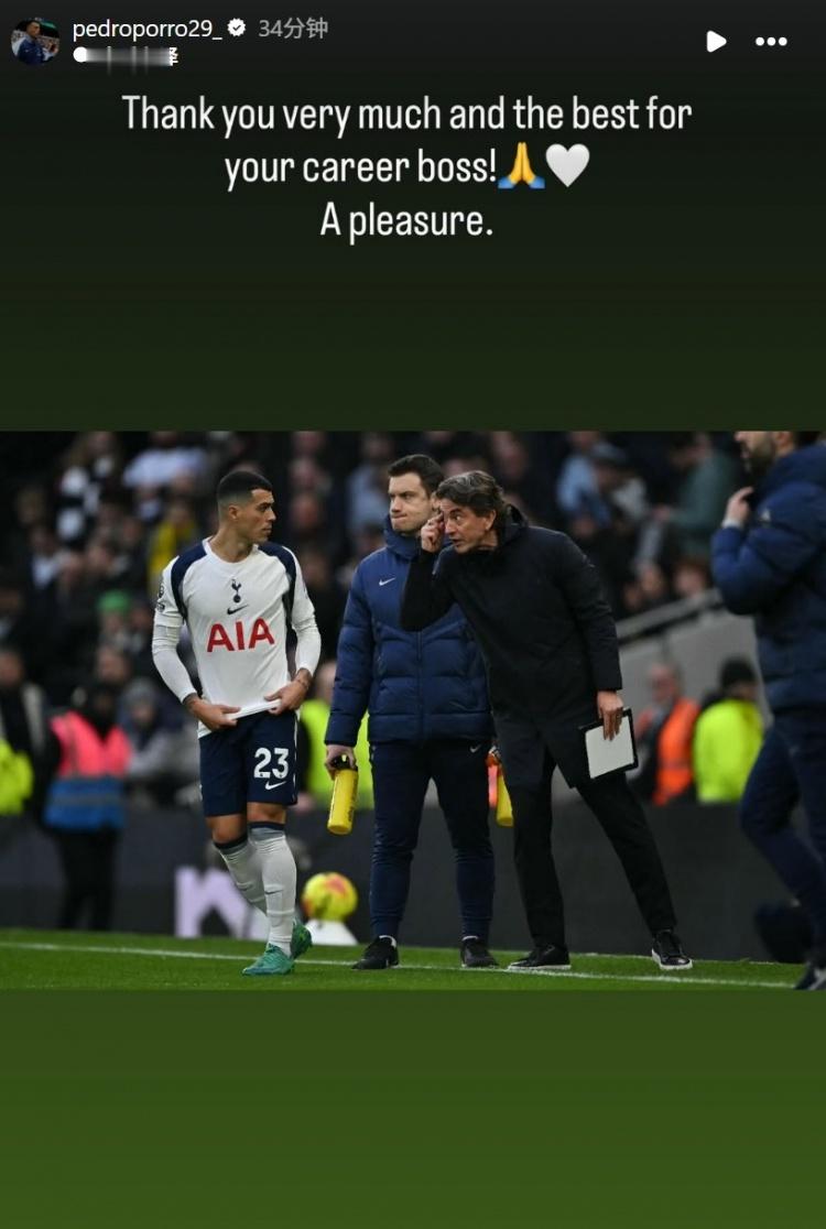 波罗社媒写道:“非常感谢您,祝您未来的职业生涯一切顺利!与你合作很愉快!”