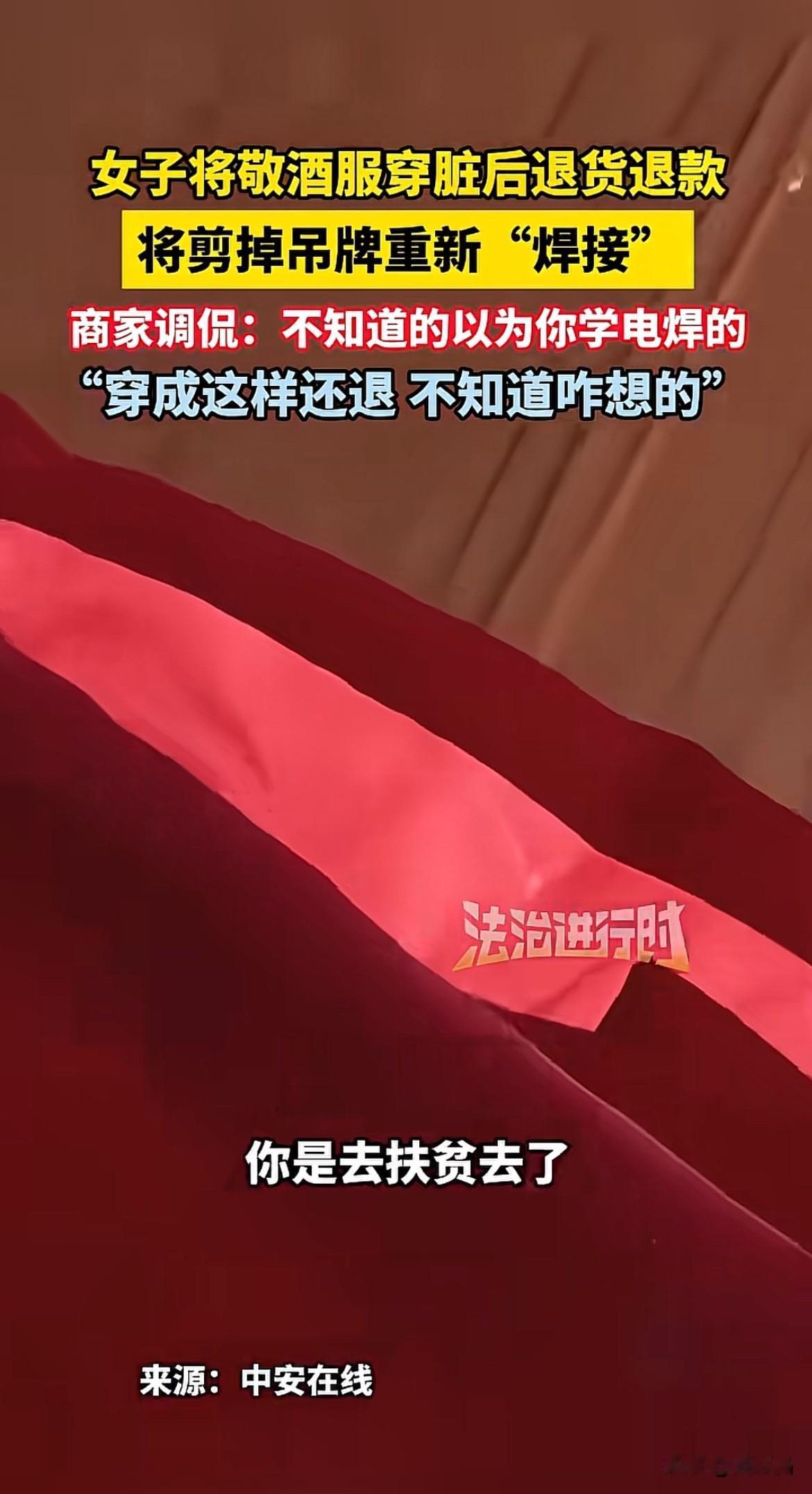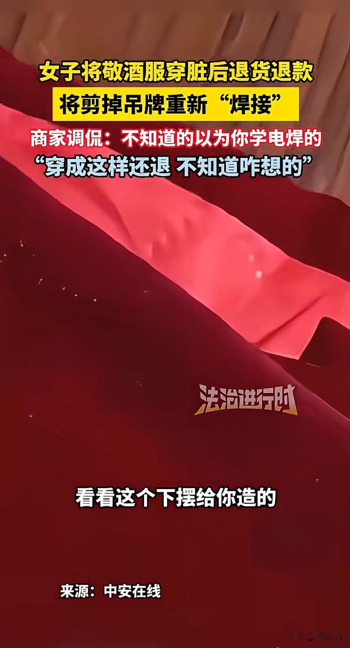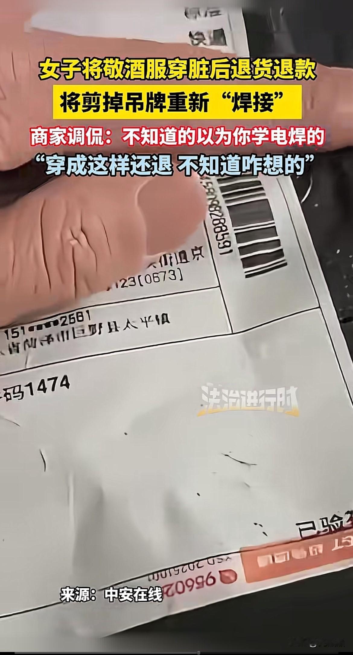 活不起了!山东,一女子网购敬酒服,婚礼结束后,将吊牌焊接回去,把脏衣服当新衣退回。商家气愤调侃:这买家肯定是电焊专业毕业。 安徽一家婚服服装店老板,收到来自山东的退货包裹,打开一看,让她傻眼了。 吊牌明显是被剪开,事后再被接回去的,接口处像个大豆子一样鼓起来,且敬酒服的下摆被拖得很脏,污渍明显,还有一些刮痕,明显是新娘穿过,婚礼结束后退货退款,想要一分不出,白嫖敬酒服。 老板娘气到发抖,收到退货,平台已经把钱 退给买家了,可这被穿得脏污的敬酒服废了,不能二次销售了,只能压在仓库当损坏处理。 老板娘调侃:“看这焊接的技术,新娘肯定大学是电焊专业的,焊接得非常完美。” 老板娘接着展示出出买家地址,是山东某镇,调侃说:“我不知道你嫁到这个地方好不好,但路肯定不好走,看你把我这个下摆造的,知道的你是在结婚,不知道的以为你是扶贫去了。” 此事引发网友热议,意见难得统一。有网友说,真给我们巨野县丢人。 也有网友说,为了这几百块的婚服钱,新娘把自己的体面和素质丢了,买不起可以租婚服,但这样明目张胆地穿过退回,太掉价儿了,结不起婚可以不结,这样的婚姻以后肯定不幸福。 还有网友说,支持商家维权,被这些没素质的买家弄得乌烟瘴气,提高了商家的退货成本,最后还是我们这些合规购买的商家来买单。 山东网友纷纷吐槽很多电商平台的商家已经对山东地区限量发售,甚至是不发货了,背后就是这些自私自利的买家,白嫖商家的货,事办完了,货一退,钱一分不少把事干了。 买家是受益了,可商家的损失没人赔,只能商家吃哑巴亏,这样的退货退款多了,商家自然就不敢做这个地区的生意了,毕竟极大概率都是亏本的买卖,哦不,不是买卖,是赔运费和商品成本的0元退货。 不能怪商家区域歧视,只能怪这些无底线的人,为了一己私利,寒了商家的心,堵了自己的路,更是把山东人网购自由的路给堵死了。 不管是商家还是买家,只有坚守诚信的原则,才能让这个网购日益繁荣的社会更加健康有序,才能让大家真正享受网购便捷、公平和谐的购物体验。 女子穿脏敬酒服焊接吊牌退货