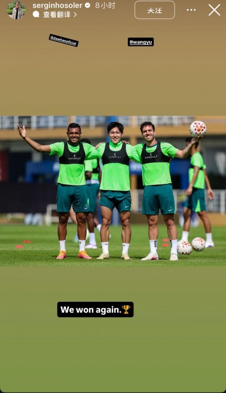 渐入佳境,塞尔吉尼奥社媒晒和达万、王禹合影:我们又赢了