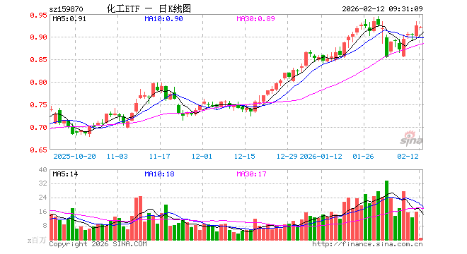 2月12日,化工ETF(159870)开盘跌0.43%,报0.920元。化工ETF(159870)重仓股方面,万华化学开盘跌0.06%,盐湖股份跌0.97%,藏格矿业涨0.05%,天赐材料跌1.23%,巨化股份涨0.00%,恒力石化跌0.23%,华鲁恒升跌0.24%,宝丰能源涨0.00%,云天化涨0.03%,金发科技涨0.16%。