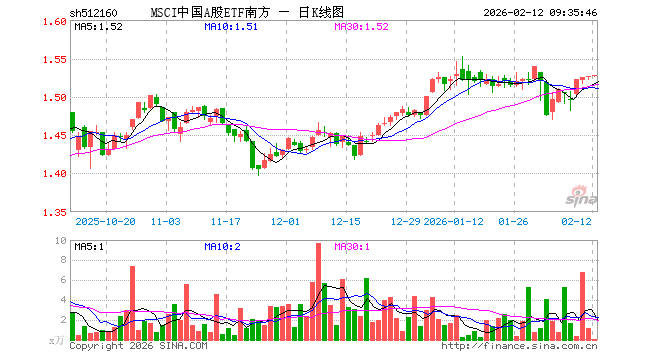 2月12日,MSCI中国A股ETF南方(512160)开盘涨0.00%,报1.526元。MSCI中国A股ETF南方(512160)重仓股方面,贵州茅台开盘跌0.27%,宁德时代涨0.54%,招商银行涨0.00%,工业富联涨0.27%,中国平安涨0.15%,紫金矿业涨0.23%,中际旭创涨0.58%,长江电力涨0.00%,农业银行涨0.00%,寒武纪涨0.10%。
