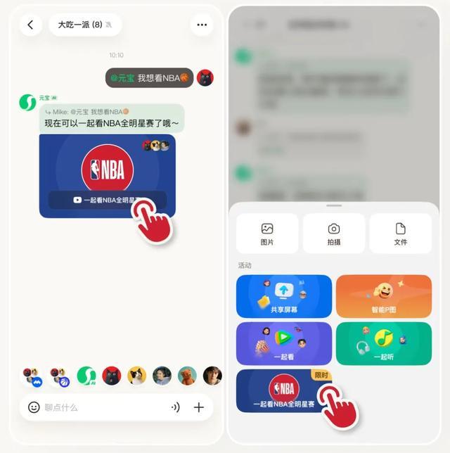 2月14日至16日,用户进入任意元宝派,点击下方的[+号]按钮,即可与派友一起看2026年NBA全明星赛,并支持在派内@元宝实时讨论赛况,还可畅享1080P高清直播体验。