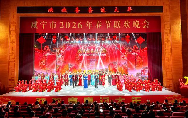 云上咸宁报道(记者骆端端)2月11日晚,“欢欢喜喜过大年”咸宁市2026年春节联欢晚会在香城大剧院上演。晚会围绕“团圆·乡韵情长”“文脉·岁月流芳”“远航·马跃新程”三个篇章展开,15个节目涵盖歌舞、戏曲、小品、相声、武术、人机共舞等多种艺术形式,呈现了咸宁山水人文的独特魅力。
