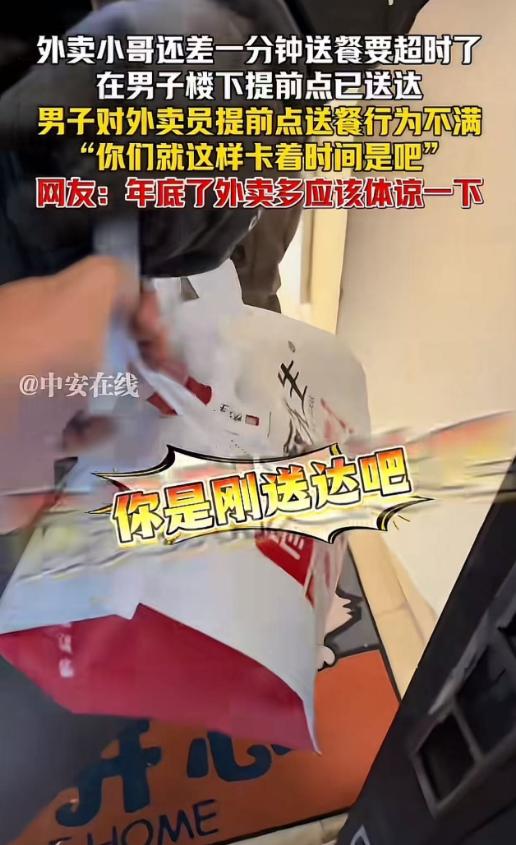 上海,外卖小哥送餐还差一分钟要超时了,在楼下提前点了送达,点餐的男子对外卖员提前点送餐行为不满,质问:“你们就这样卡着时间是吧?”而外卖小哥的态度,让网友炸锅了! 事情发生在上海某小区,当天傍晚7点,正是外卖订单扎堆、路面最堵的时段,外卖小哥攥着温热的餐箱,一路闯红灯、绕近道,拼尽全力赶时间,可手机屏幕上的超时倒计时,还是一点点缩减到只剩60秒。 他刚冲进小区停好电动车,抬头一看,顾客所在的楼栋电梯还在十几层慢悠悠挪动,压根来不及赶上。 小哥心里清楚,平台的规则有多苛刻——超时3分钟就要扣50元,相当于他跑十几单的辛苦钱,还会影响接单权重,后续想多接单都难。 权衡之下,他咬咬牙,在楼下点击了“已送达”,随后抱着餐箱,一路小跑赶电梯,生怕耽误太久让顾客更不满。 几分钟后,他敲开了顾客的门,餐品完好无损,也只比预计时间晚了不到一分钟,可顾客看着手机上早已显示“已送达”的提示,脸上的不满藏都藏不住,语气里满是委屈和质疑,觉得自己花了钱,买的却是“虚假送达”的服务。 让人意外的是,面对顾客的不满,外卖小哥既没有低声道歉,也没有拼命解释自己的难处,只是平静地站在原地,眼底藏着掩不住的疲惫,没有多余的情绪,既不嚣张,也不敷衍。 就是这份看似“冷漠”的态度,被传到网上后,瞬间让网友炸了锅。 网友瞬间分成两大阵营,吵得不可开交,一派站在顾客这边,觉得规则就是规则,提前点送达本身就是违规操作。 顾客花钱买服务,有不满很正常,不能因为小哥不容易,就纵容这种“耍小聪明”的行为,毕竟如果人人都这样,服务秩序就乱了。 另一派则全力体谅外卖小哥,直言“谁不是为了碎银几两奔波”,有网友晒出数据,现在外卖骑手平均配送时长已压缩至28分钟,较五年前减少42%,上海不少骑手提前点送达率高达37%,大多是被逼无奈。 小哥已经拼到了最后一刻,只是输给了冰冷的算法和不可控的电梯,没必要揪着不放。 其实这场纠纷,从来没有绝对的对错,顾客想要的是被尊重、是如约而至的服务,小哥想要的是不被罚款、能安稳赚点辛苦钱,两人都是被生活和规则裹挟的普通人。 这场因一分钟引发的争论,照出的不仅是外卖小哥的生存困境,更是平台算法的冰冷、服务规则的矛盾。 愿我们多一点换位思考,平台多一点人情味,让每一个努力生活的人,都能被温柔以待,不必在罚款和误解中,胆战心惊地奔波。