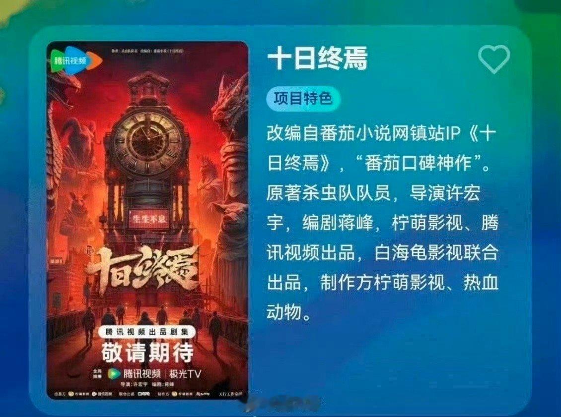 网传十日终焉第一季24集哦哟,肖战《十日终焉》预计3月份开机,据说这部剧的第一季有24集,不少网友觉得24集拍不完这部剧的,又传出《十日终焉》会出系列剧集,女主暂定周也,侯燥剧组能早日官宣开机吧!网传肖战十日终焉24集