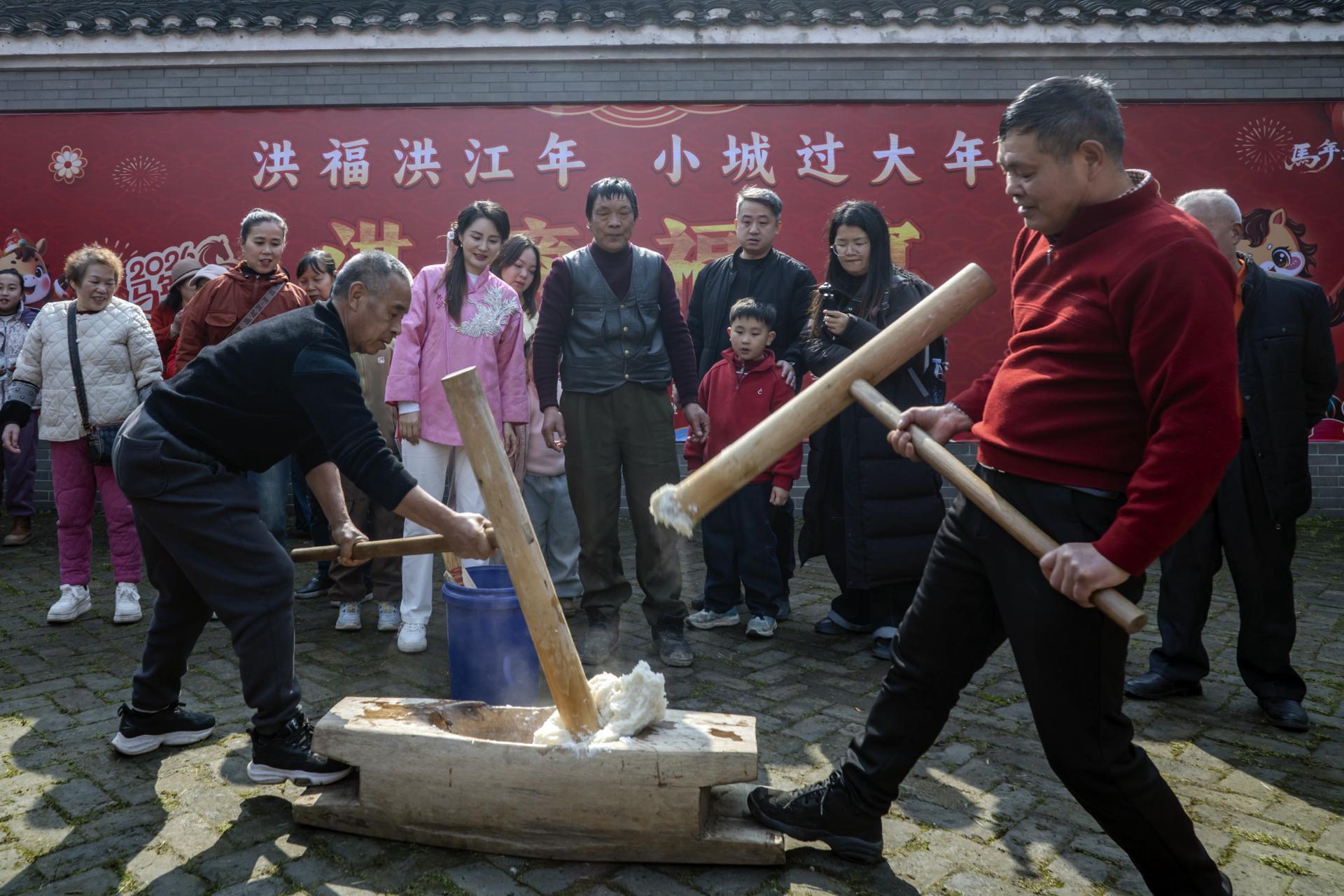 福宴未开,烟火先暖。下午,留园早已变成热闹的海洋。歌舞表演、草龙表演精彩连连。留园内翰墨飘香,书法爱好者挥毫泼墨,给当地居民写春联、送“福”字,吸引了前来求取对联的群众。不远处糯香阵阵,“福锤声声打糍粑”活动正在热闹进行,不少游客和市民纷纷上阵体验,捶打声此起彼伏。