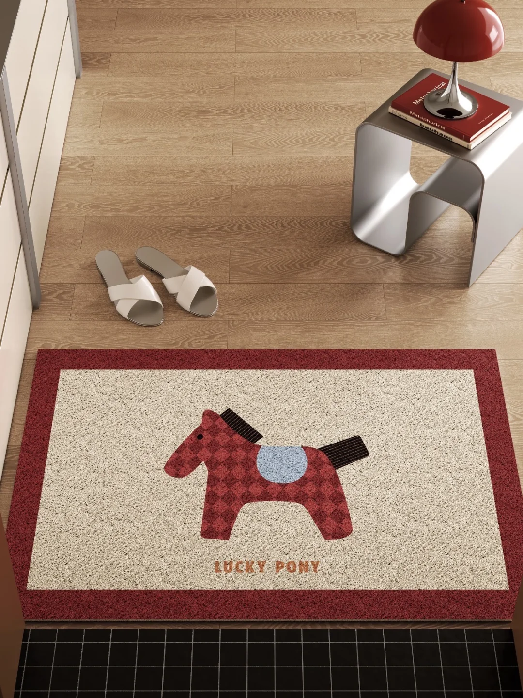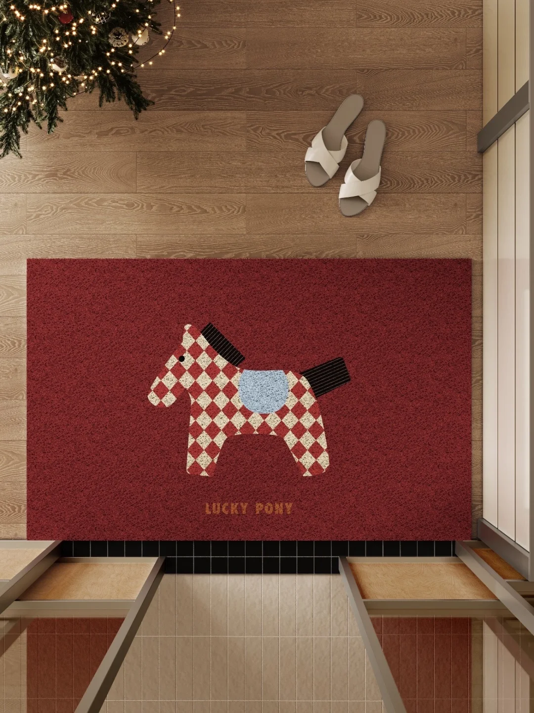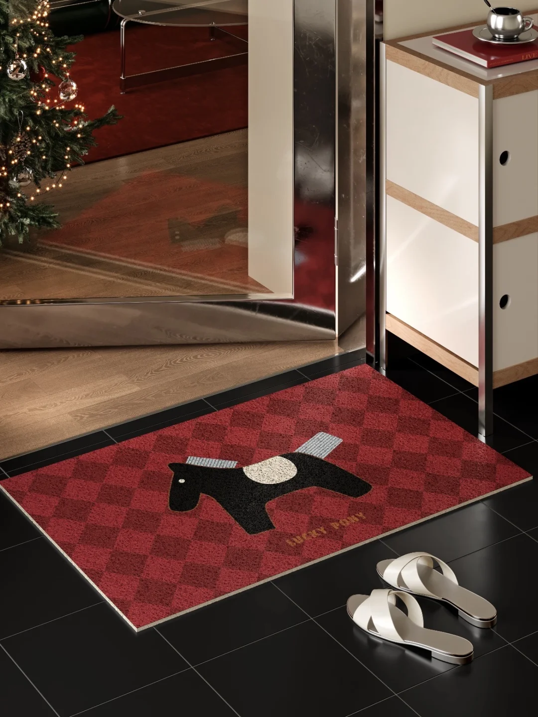 新年将至,玄关也悄悄换了新装 一块可爱小马驹地垫 点亮新年氛围 配色是沉稳的苏格兰红与菱格纹交织 复古浓郁 可以融入大多数家居风格 材质选用了高弹丝圈 耐磨也好打理 日常的灰尘脚印 用清水冲洗就能恢复整洁 可以铺在门口、玄关或阳台 为家带来一点节日的喜悦氛围 -