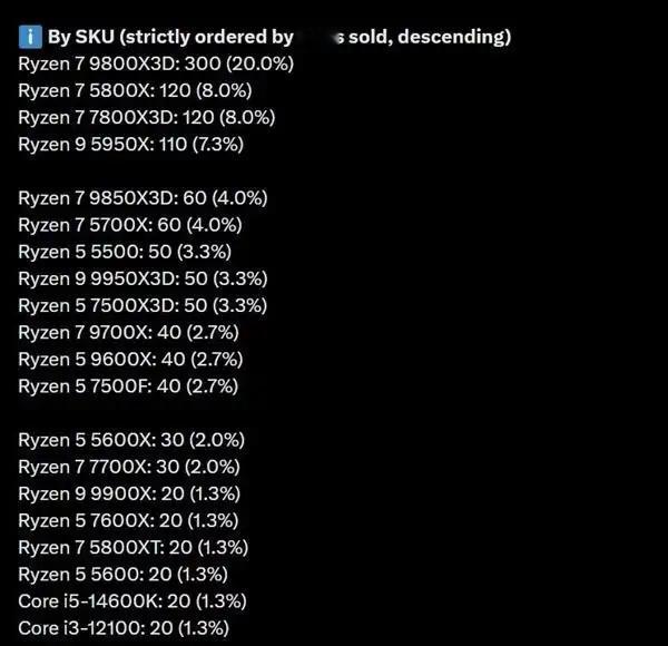 离谱!DDR5 一涨价,AMD 老 CPU 卖爆,直接干翻新旗舰[灵光一闪] 谁能想到,发布多年的 AMD 老平台突然逆袭成顶流! 海外销量数据炸锅:R7 5800X/XT 月销近 3000 套,直接超越新旗舰 R7 7800X3D,稳居榜单第二,只输给 9800X3D。德国市场更是与 7800X3D 并列亚军,老 CPU 打赢接班人。 DDR5 内存暴涨,玩家被迫回流省钱的 AM4 DDR4 平台。加上 5800X3D 等神 U 已停产,8 核 16 线程的 5800X/XT 成 Zen3 唯一选择,性价比直接拉满。 现在装机圈风向大变:不追新平台,蹲老 U 更香。[笑哭]