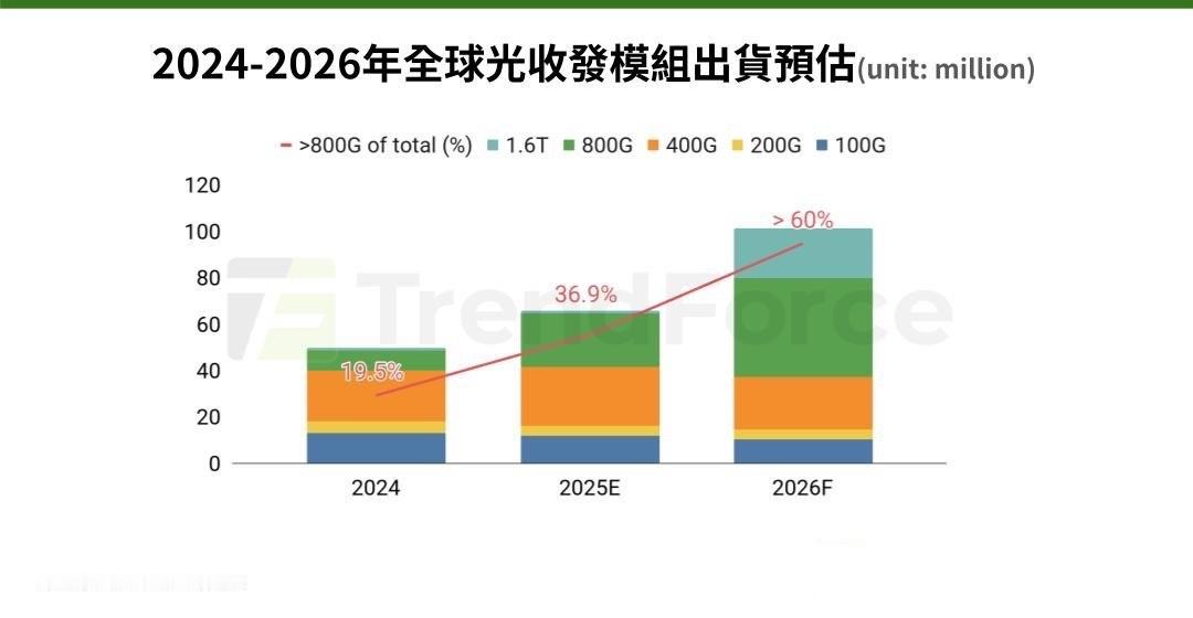 在Ironwood架构中,机柜内部的TPU短距互连使用高速铜缆,而**跨机柜传输则全面转向全光网络传输**。AI集群在设计阶段即配置了充足的800G/1.6T光模块。TrendForce预估,2026年Google TPU出货量将接近400万颗,对800G以上光模块的需求量将**超过600万支**。