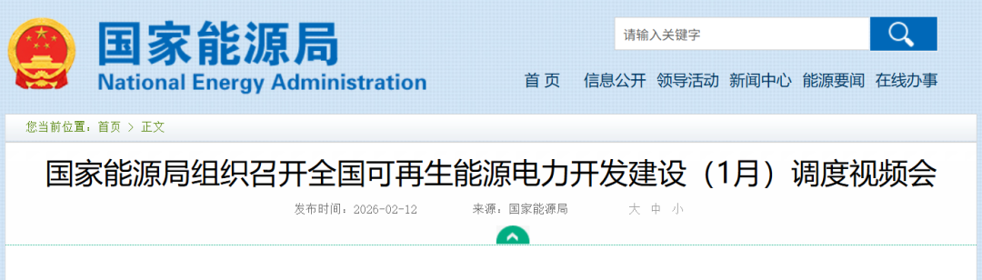 储能与电力市场获悉,近日,国家能源局召开全国可再生能源电力开发建设(1月)调度视频会。