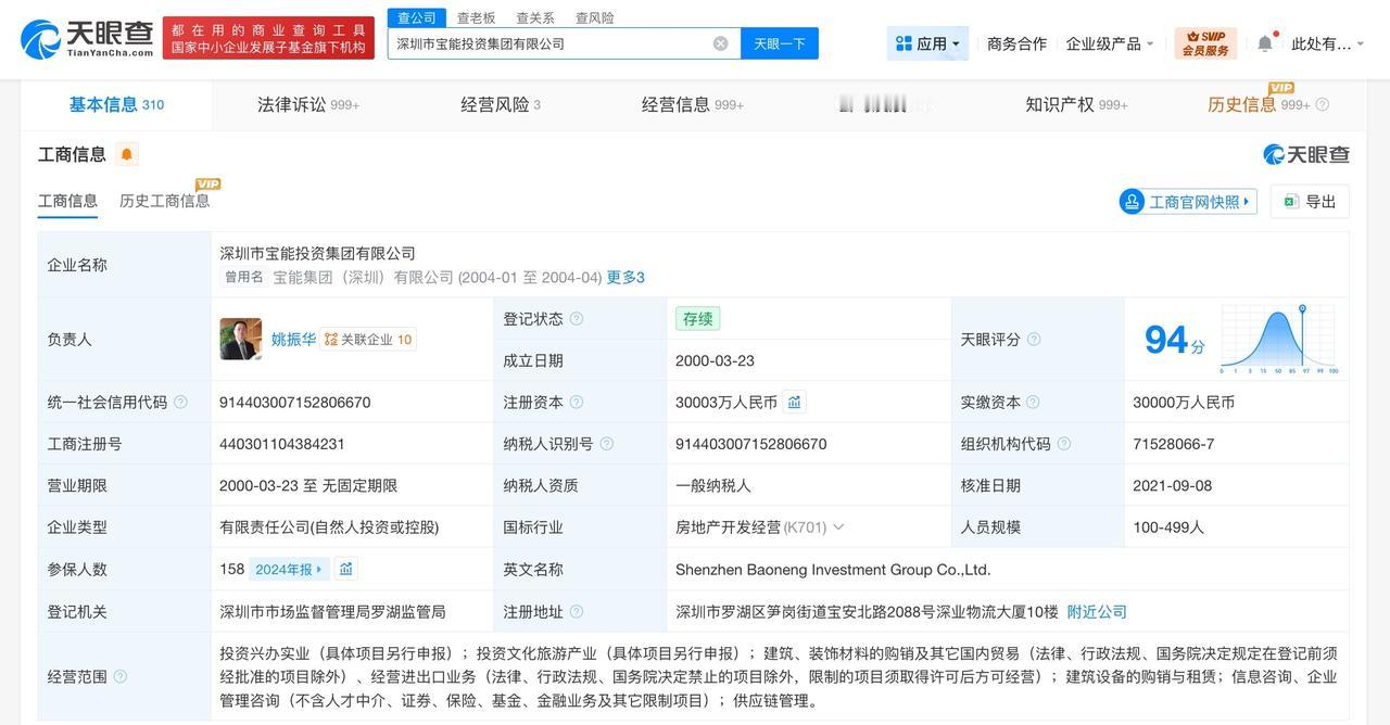 姚振华被冻结3亿股权 姚振华所持3亿股权再被冻结 天眼查天眼风险信息显示,近日,姚振华新增一则股权冻结信息,股权所在企业为深圳市宝能投资集团有限公司,冻结股权数额3亿人民币,冻结期限自2026年1月16日至2029年1月15日,执行法院为广东省深圳市中级人民法院。 深圳市宝能投资集团有限公司成立于2000年3月,法定代表人为姚振华,注册资本约3亿人民币,经营范围含投资兴办实业、投资文化旅游产业、信息咨询、企业管理咨询等。股东信息显示,该公司由姚振华、深圳赛康资产管理有限公司共同持股。 天眼查信息: