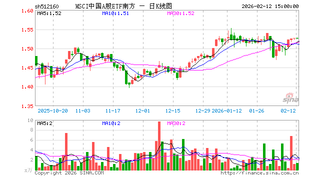 2月12日MSCI中国A股ETF南方(512160)份额增加200.00万份,最新份额1.38亿份,最新规模2.10亿元