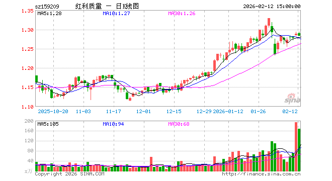 2月12日,中证红利质量ETF(159209)跌0.39%,成交额2.17亿元。当日份额增加1.39亿份,最新份额为12.72亿份,近20个交易日份额增加5.83亿份。最新资产净值计算值为16.33亿元。