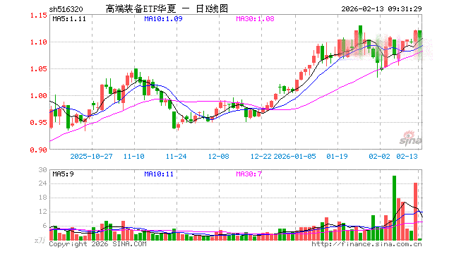高端装备ETF华夏(516320)开盘涨0.00%,重仓股宁德时代跌0.07%,阳光电源跌1.31%