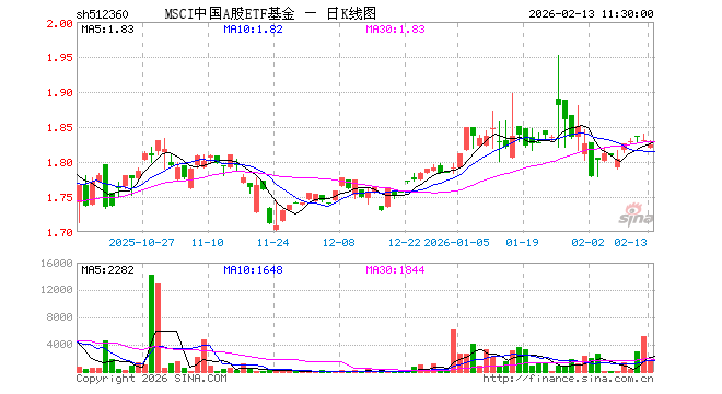 MSCI中国A股ETF基金(512360)跌0.38%,半日成交额27.39万元