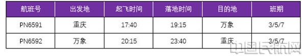 该航线航班号为PN6591/PN6592,计划每周执行三班(班期:周三、五、七)。具体时刻为:去程PN6591计划17:40从重庆起飞,当地时间19:15抵达万象;返程PN6592计划当地时间20:15从万象起飞,23:40返回重庆(以上均为当地时间)。直飞航线的开通将大幅缩短两地间的交通时间,显著提升出行体验,也为重庆国际航空枢纽的中转集散能力增添新支撑。