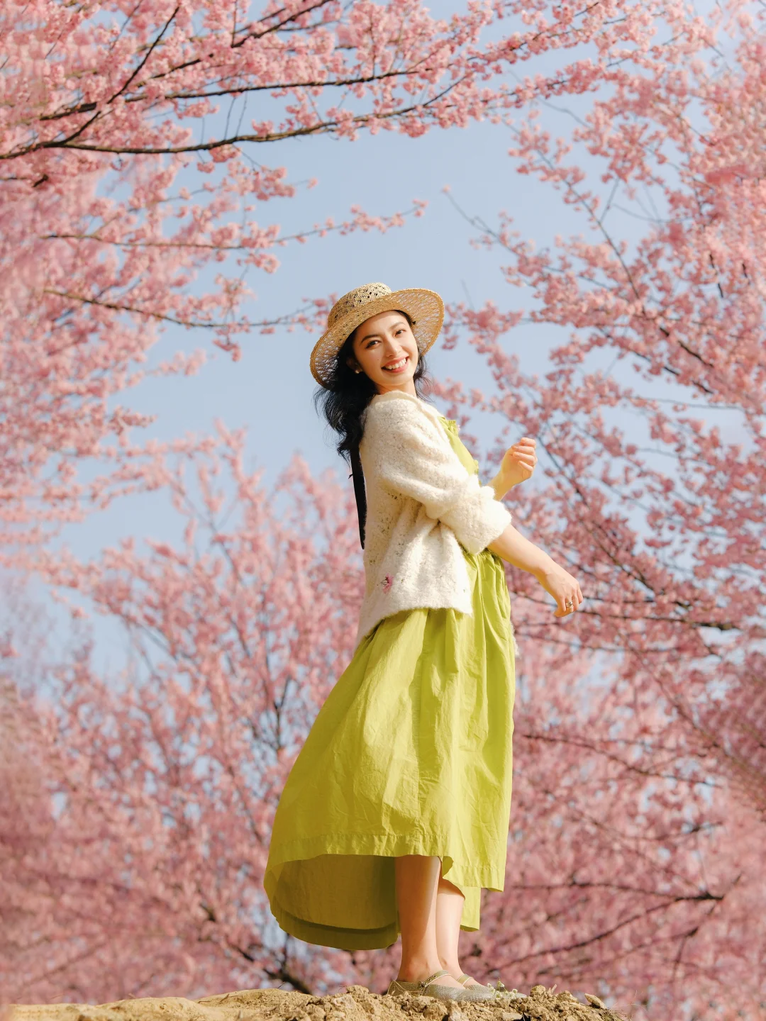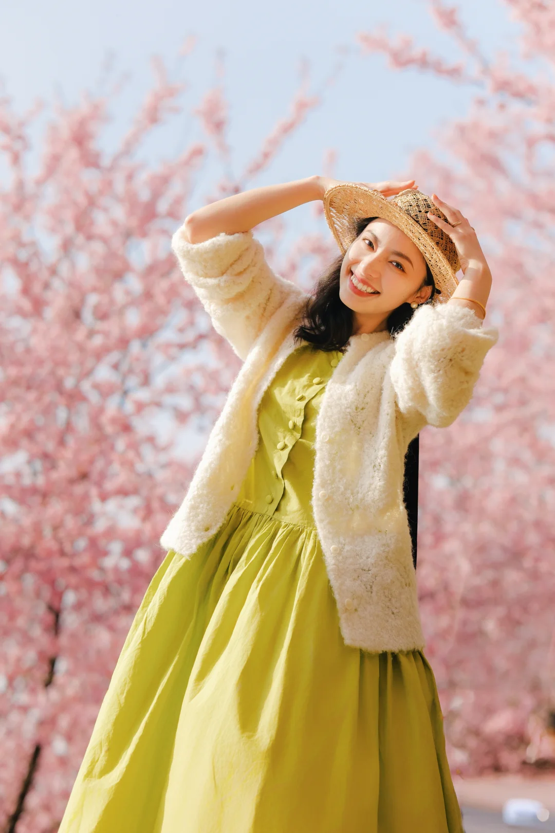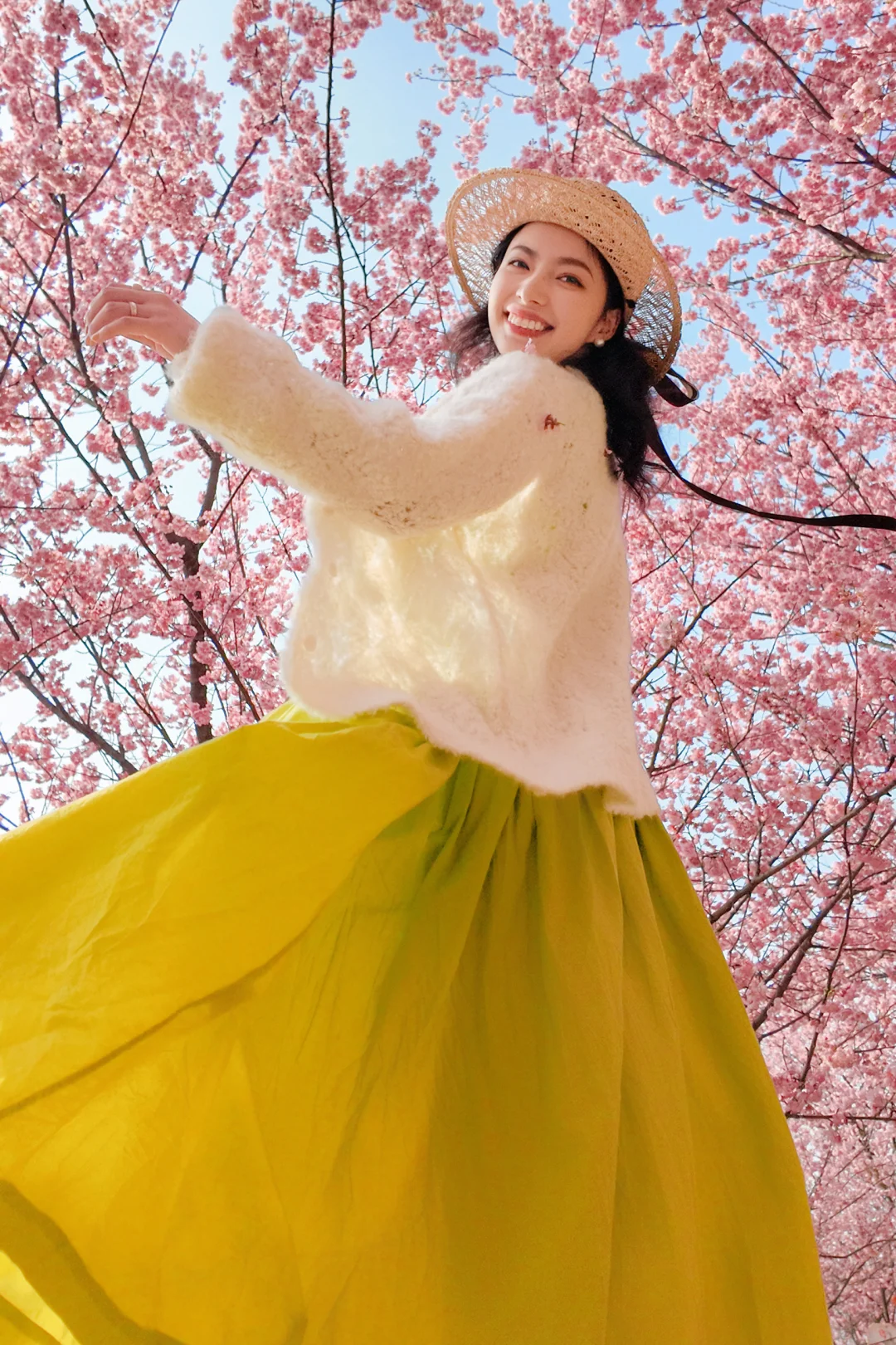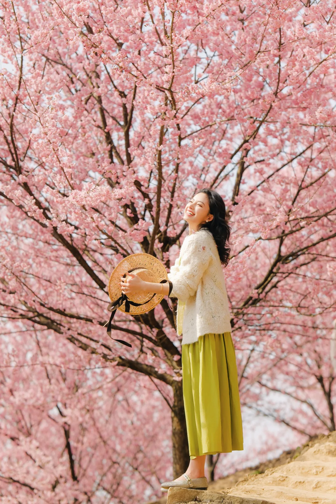 1️⃣黄绿色系好适合拍樱花,大家今年真的可以尝试一下,粉绿的色彩在画面里就很春天了!
